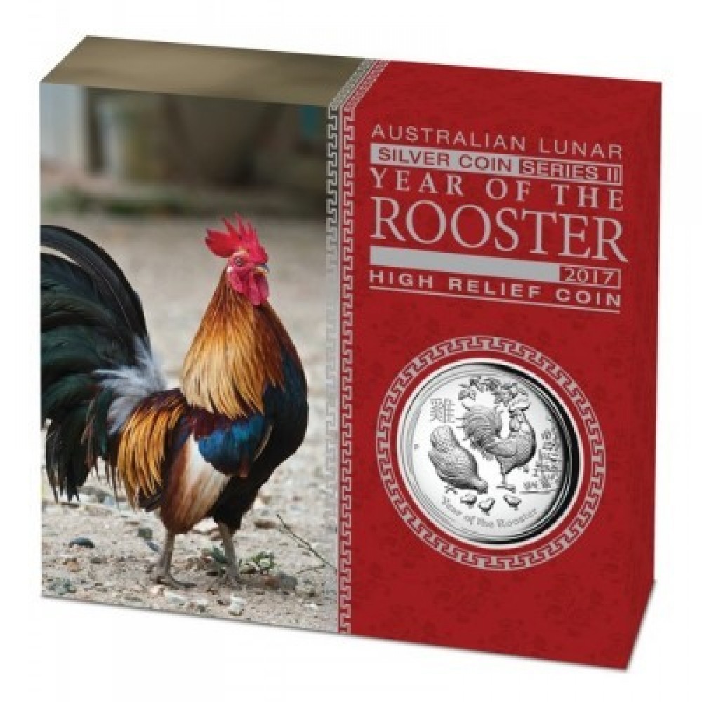Lunar2 Kakas éve 2017 1 uncia high relief ezüst pénzérme S-AU-L2Rooster1oz17HR