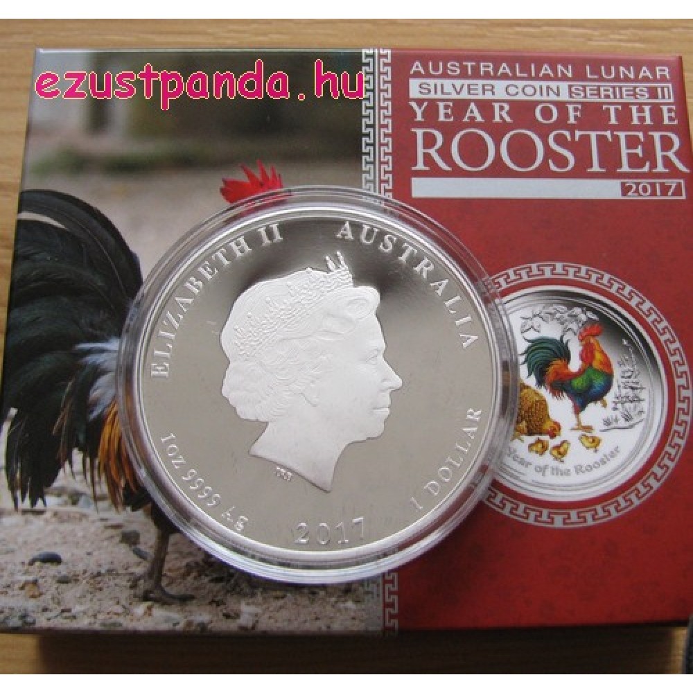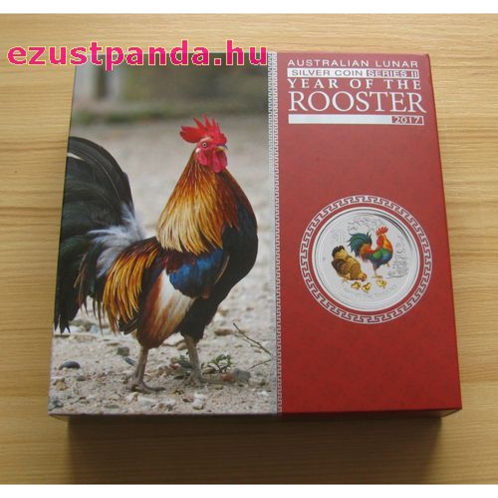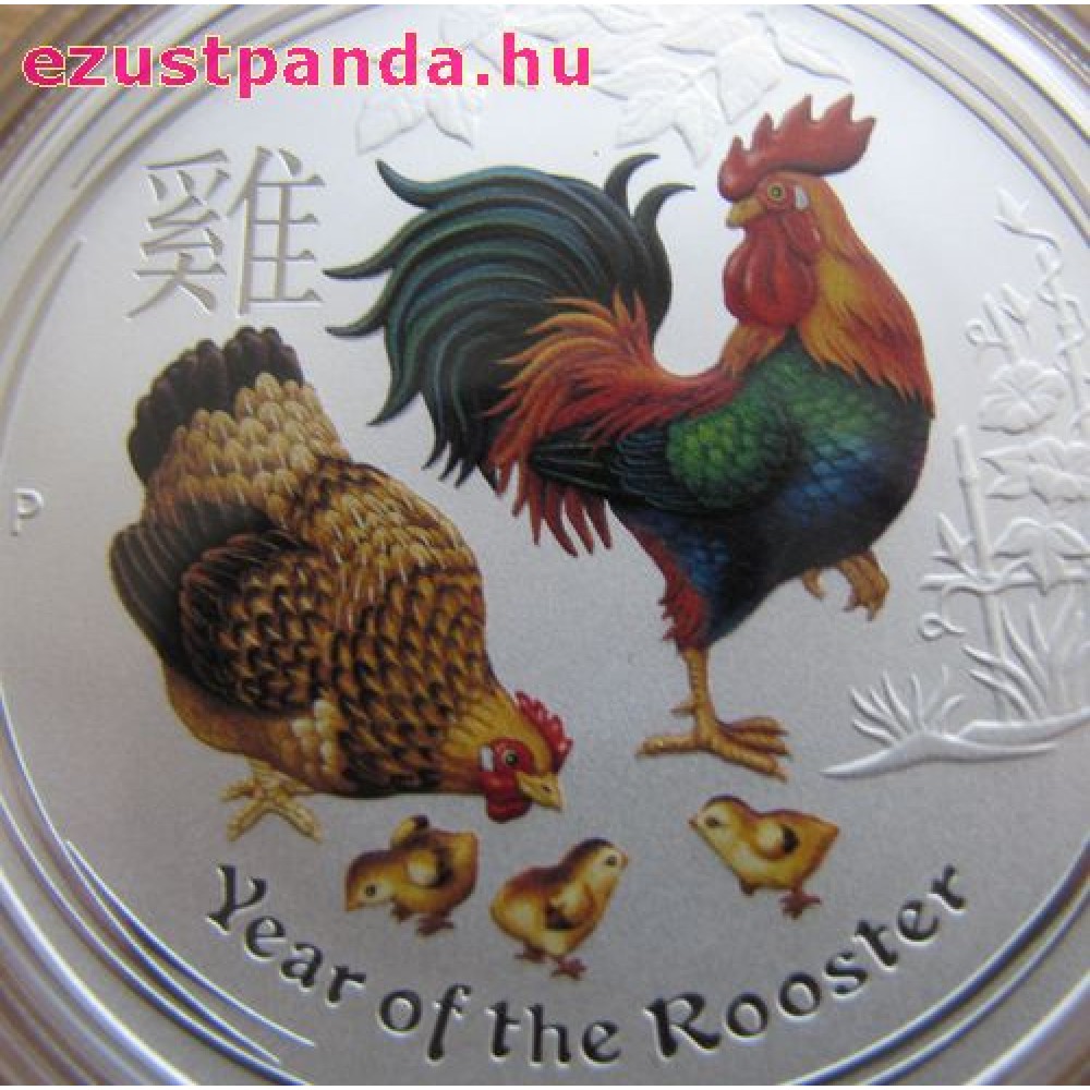 Lunar2 Kakas éve 2017 1 uncia színes ezüst pénzérme S-AU-L2Rooster1oz17COL
