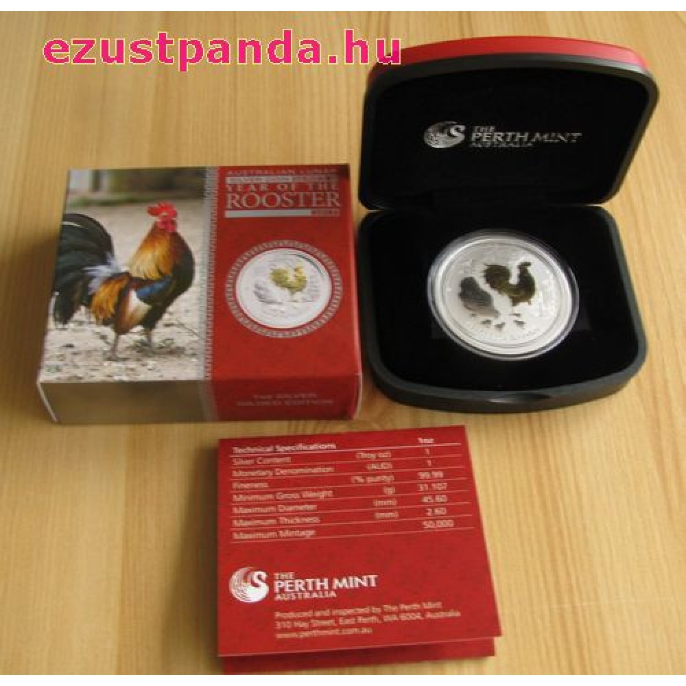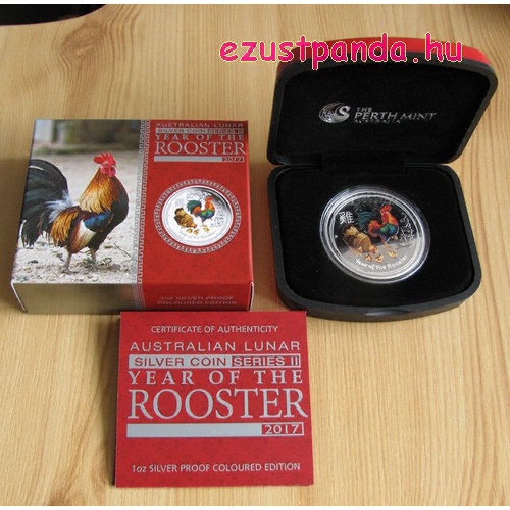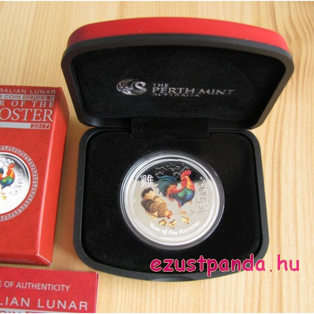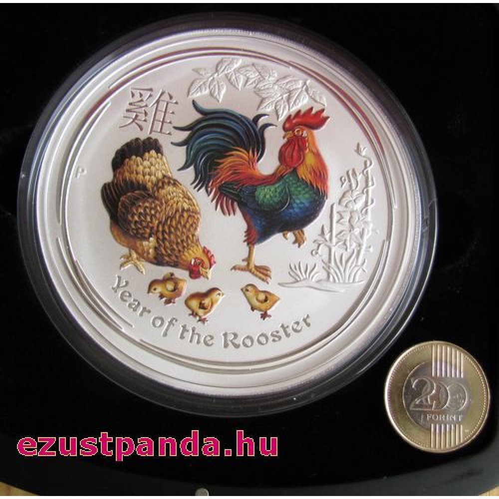 Lunar2 Kakas éve 2017 1 uncia színes ezüst pénzérme S-AU-L2Rooster1oz17COL