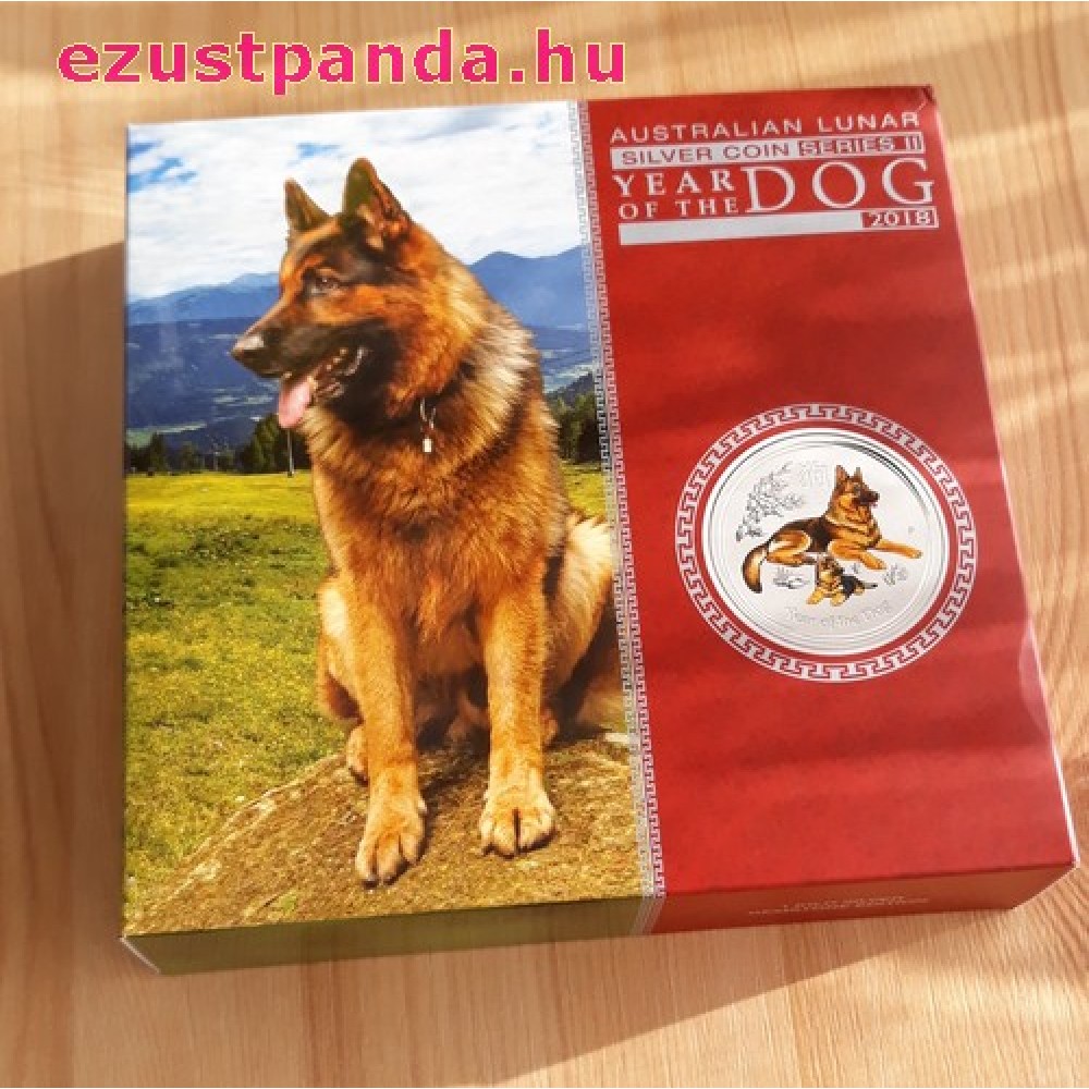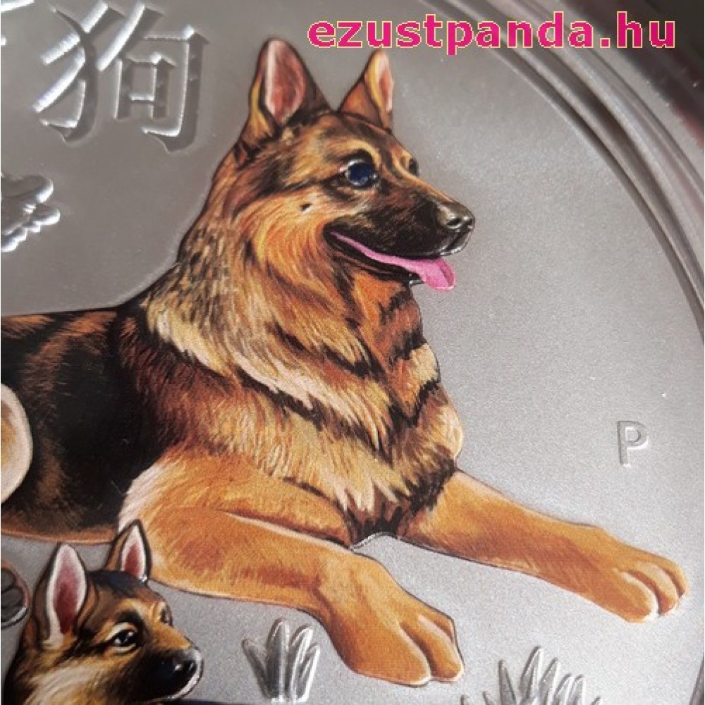 Lunar2 Kutya éve 2018 1 uncia színes ezüst pénzérme S-AU-L2Dog1oz18COL