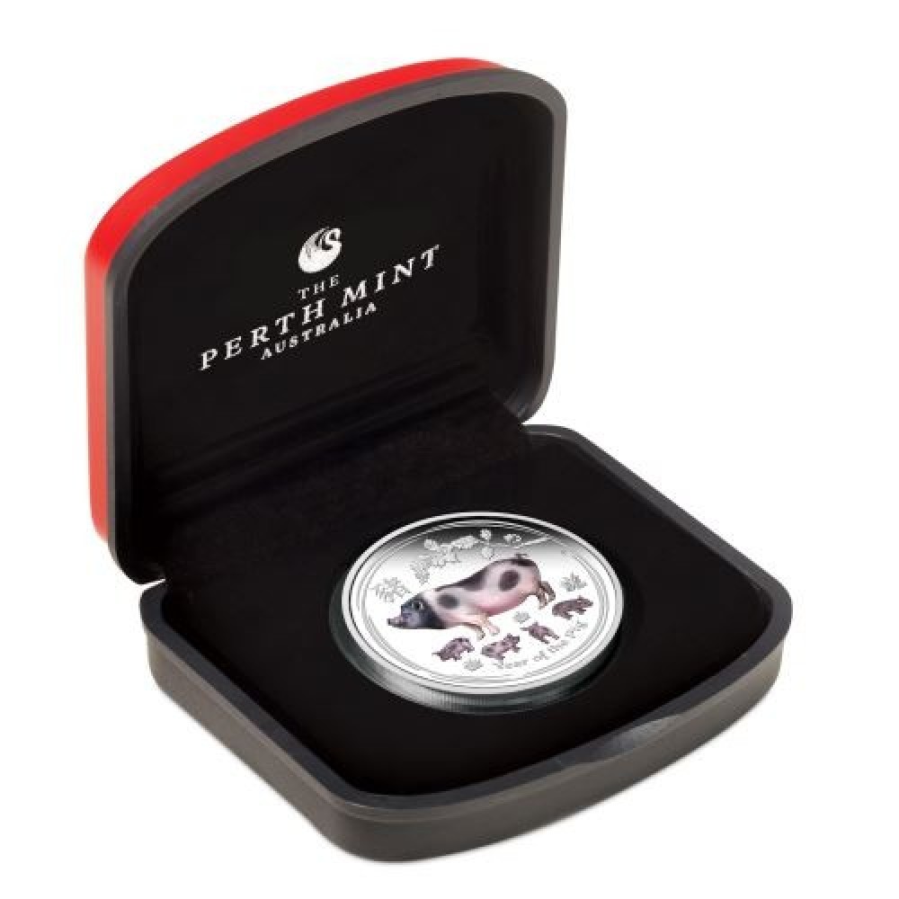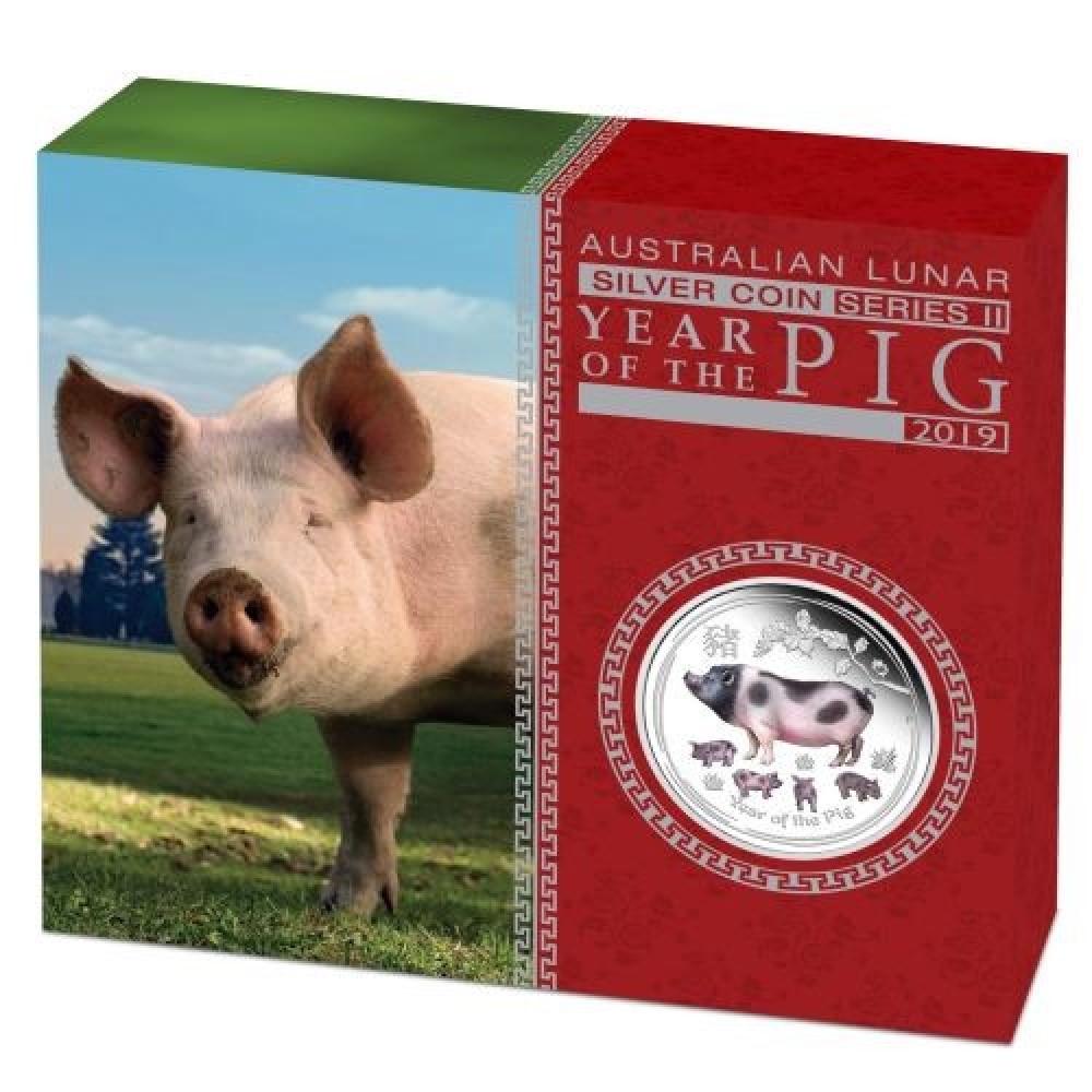 Lunar2 Disznó éve 2019 1 uncia színes ezüst pénzérme S-AU-L2Pig1oz19COL