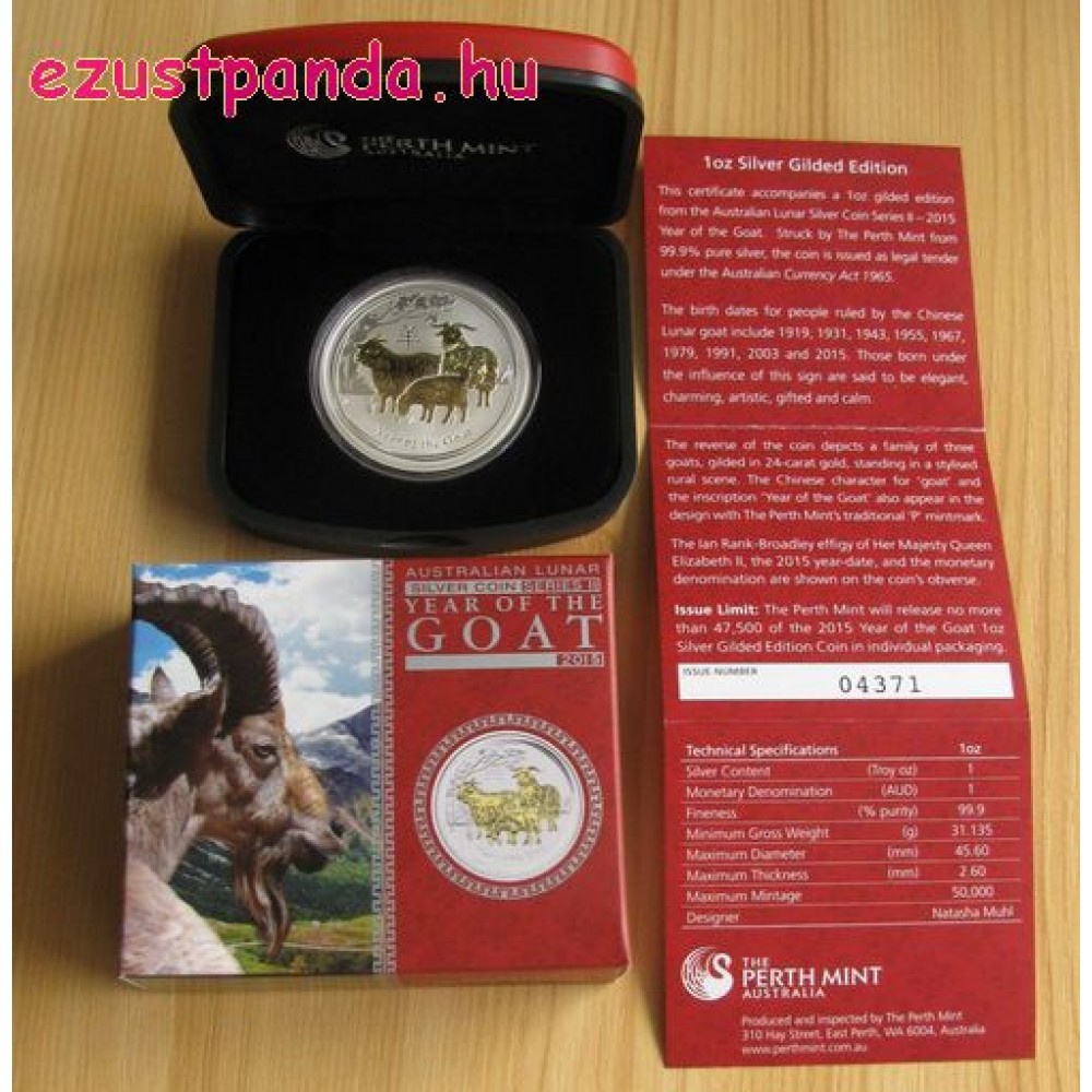 Lunar2 Kecske éve 2015 1 uncia aranyozott ezüst pénzérme S-AU-L2Goat1oz15GILD