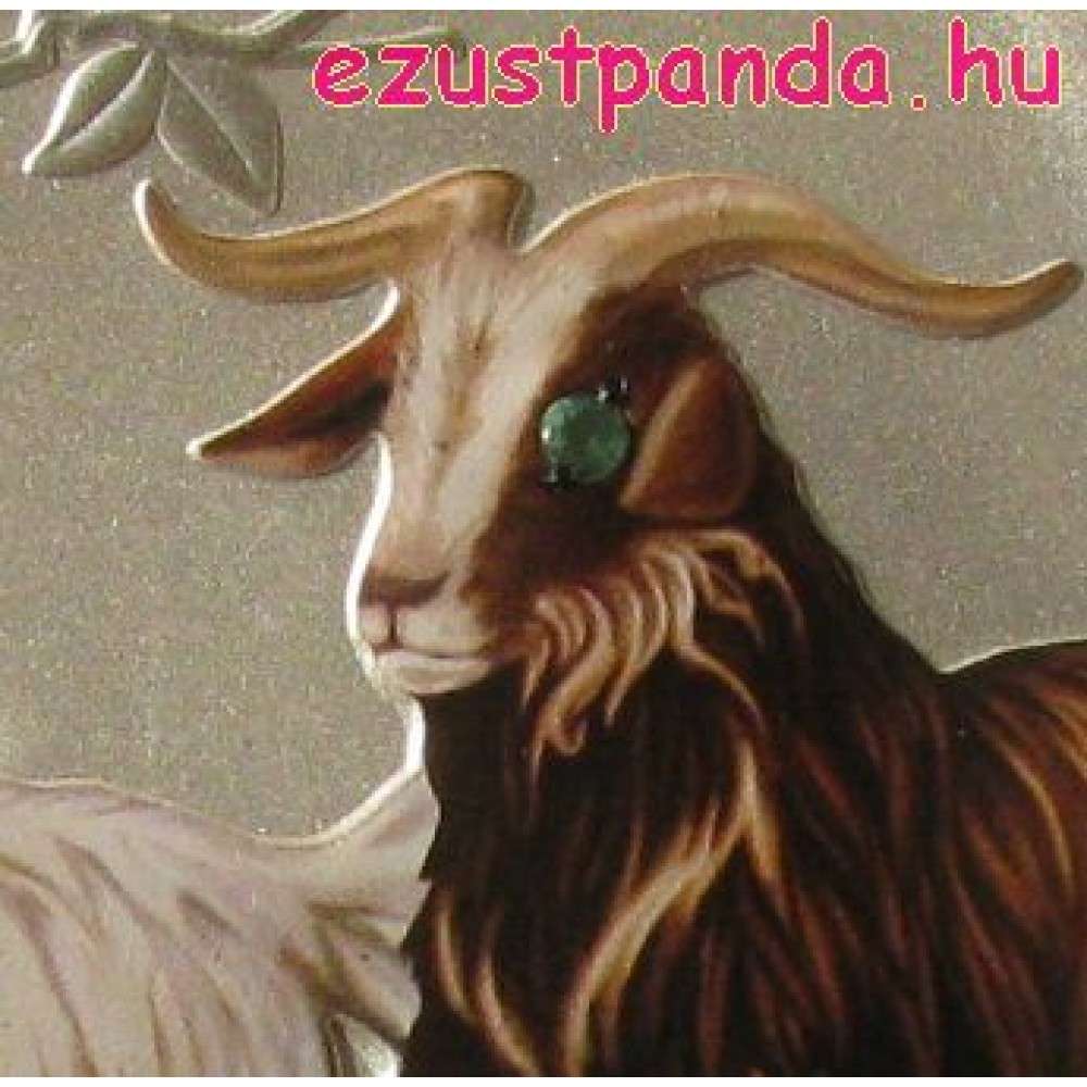 Lunar2 Kecske éve 2015 1 kilogramm színes ezüst pénzérme, smaragddal S-AU-L2Goat1kg15GEM