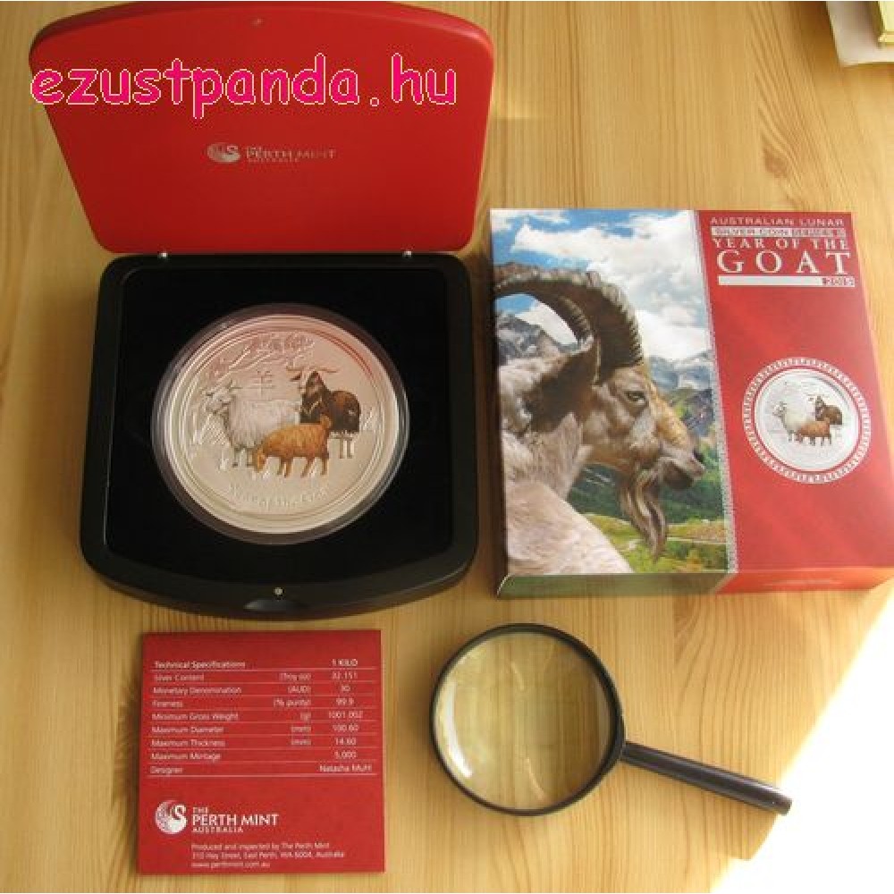 Lunar2 Kecske éve 2015 1 kilogramm ezüst pénzérme S-AU-L2Goat1kg15