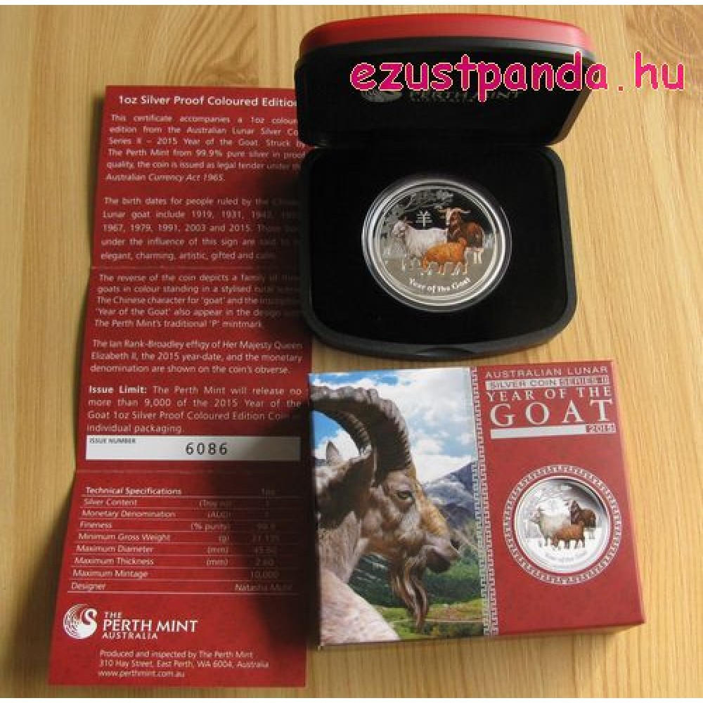 Lunar2 Kecske éve 2015 1 uncia színes proof ezüst pénzérme S-AU-L2Goat1oz15PPCOL