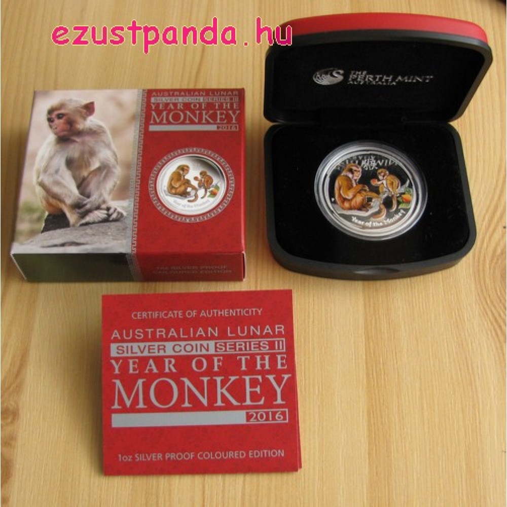 Lunar2 Majom éve 2016 1 uncia színes proof ezüst pénzérme S-AU-L2Monkey1oz16PPCOL