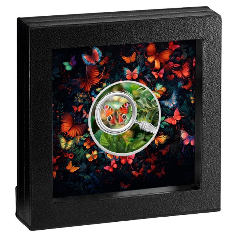 Nappali pávaszem lepke Kamerun 2025 ezüst pénzérme - CSAK 555 példány! S-CM-ButAI24