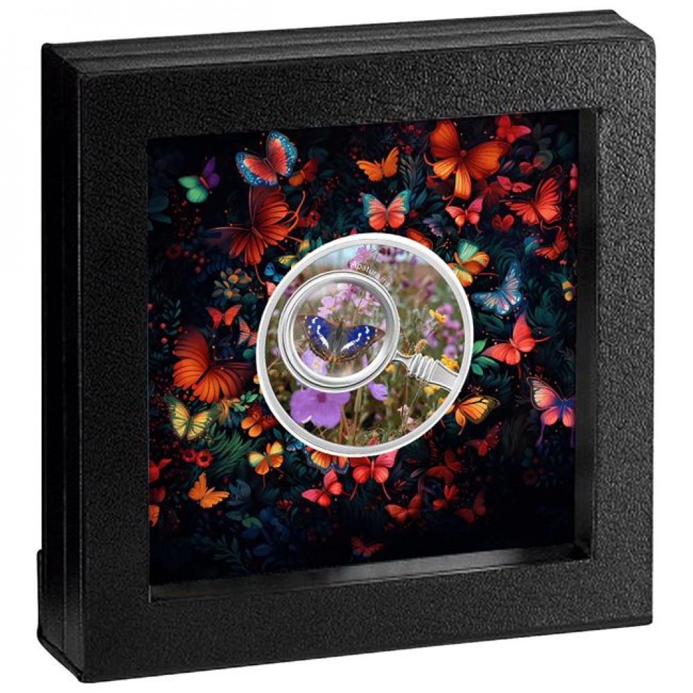 Nagy színjátszólepke Kamerun 2024 ezüst pénzérme - CSAK 555 példány! S-CM-ButAIris24
