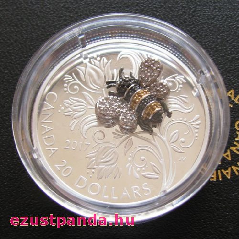 Méhecske drágakövekkel - 2017 1 uncia kanadai proof ezüst pénzérme S-CA-JewelBee17