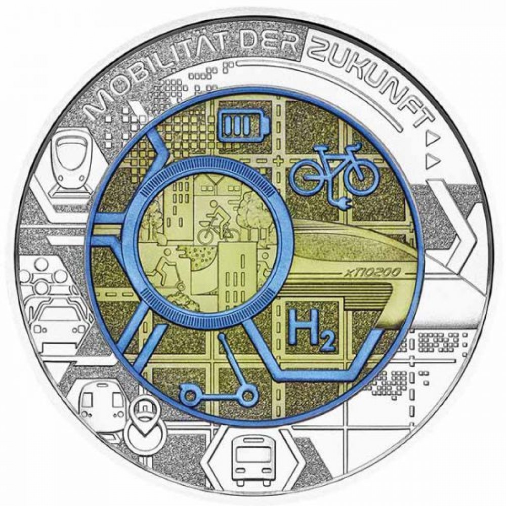 Mobilitás a jövőben - 25 EUR 2021 ezüst-nióbium pénzérme S-AT-NiobMob21