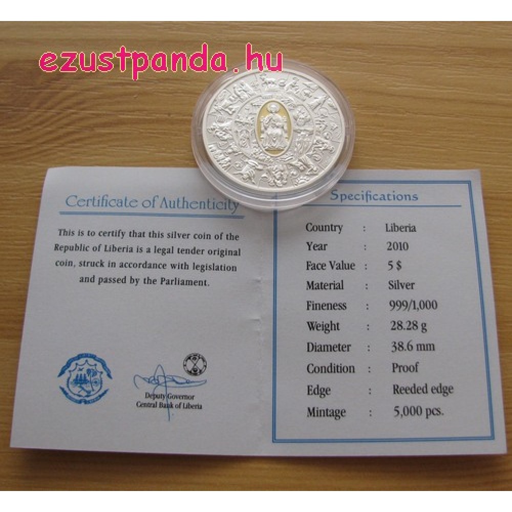 Szent Péter apostol - Libéria 2010 aranyozott proof ezüst pénzérme S-LR-ApPeter10