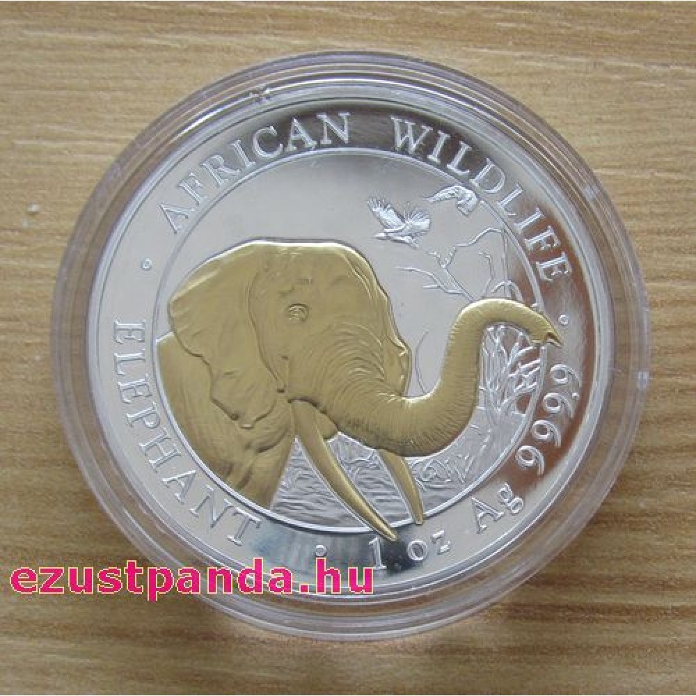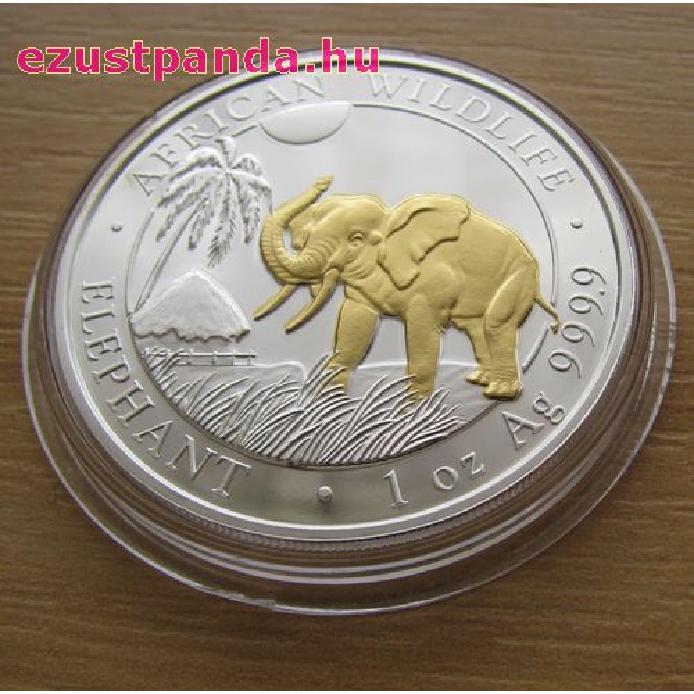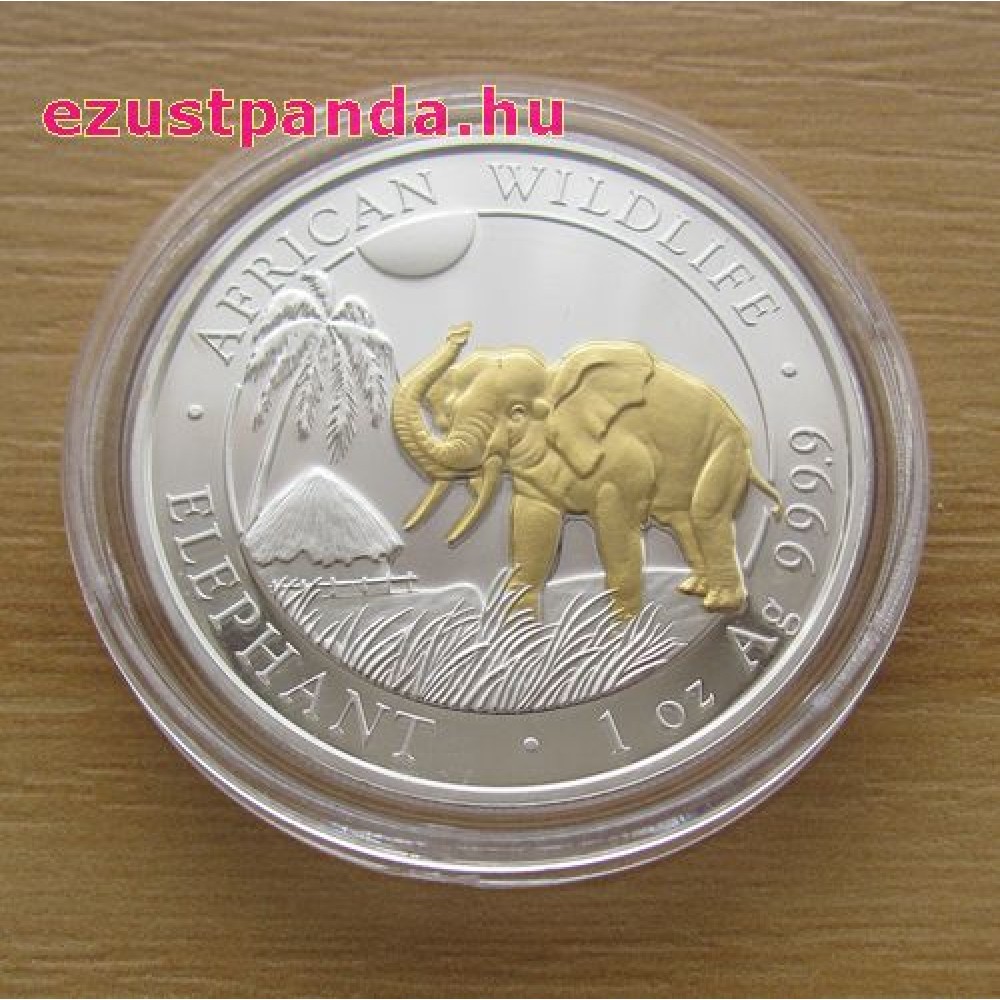 Szomália Elefánt 2014 1 uncia aranyozott ezüst pénzérme S-SO-Elep1oz14GILDED