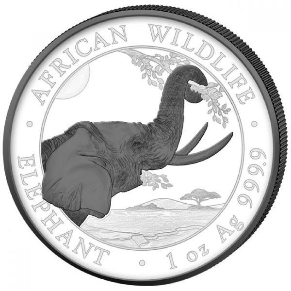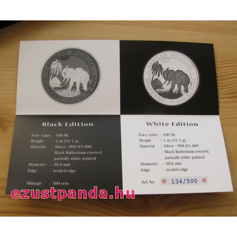 Szomália Elefánt 2017 "Fekete és Fehér" 2x1 uncia ruténiummal bevont ezüst érmeszett S-SO-Elep2x1oz17SetBW