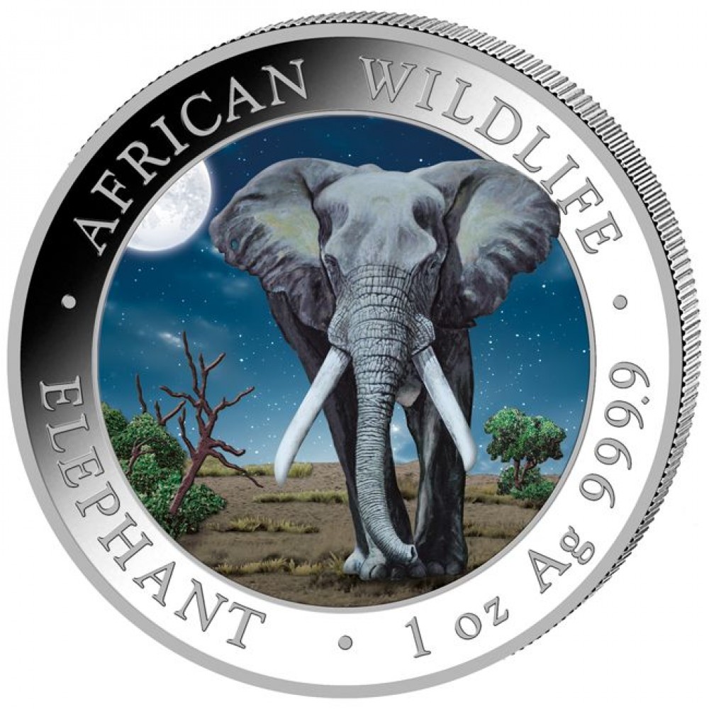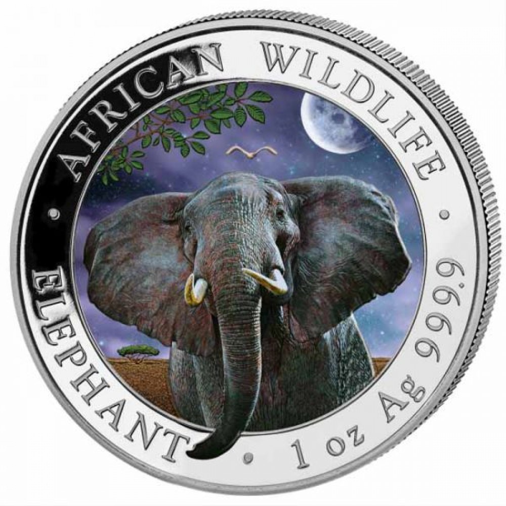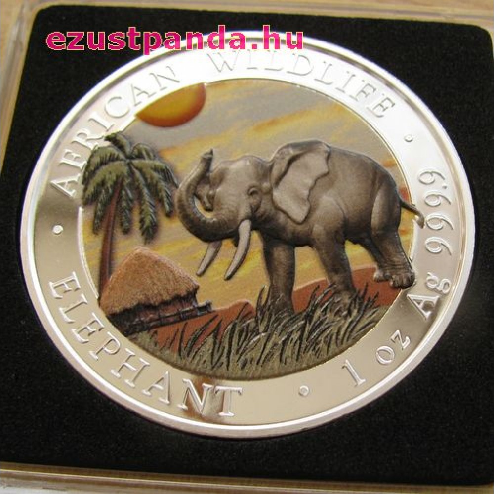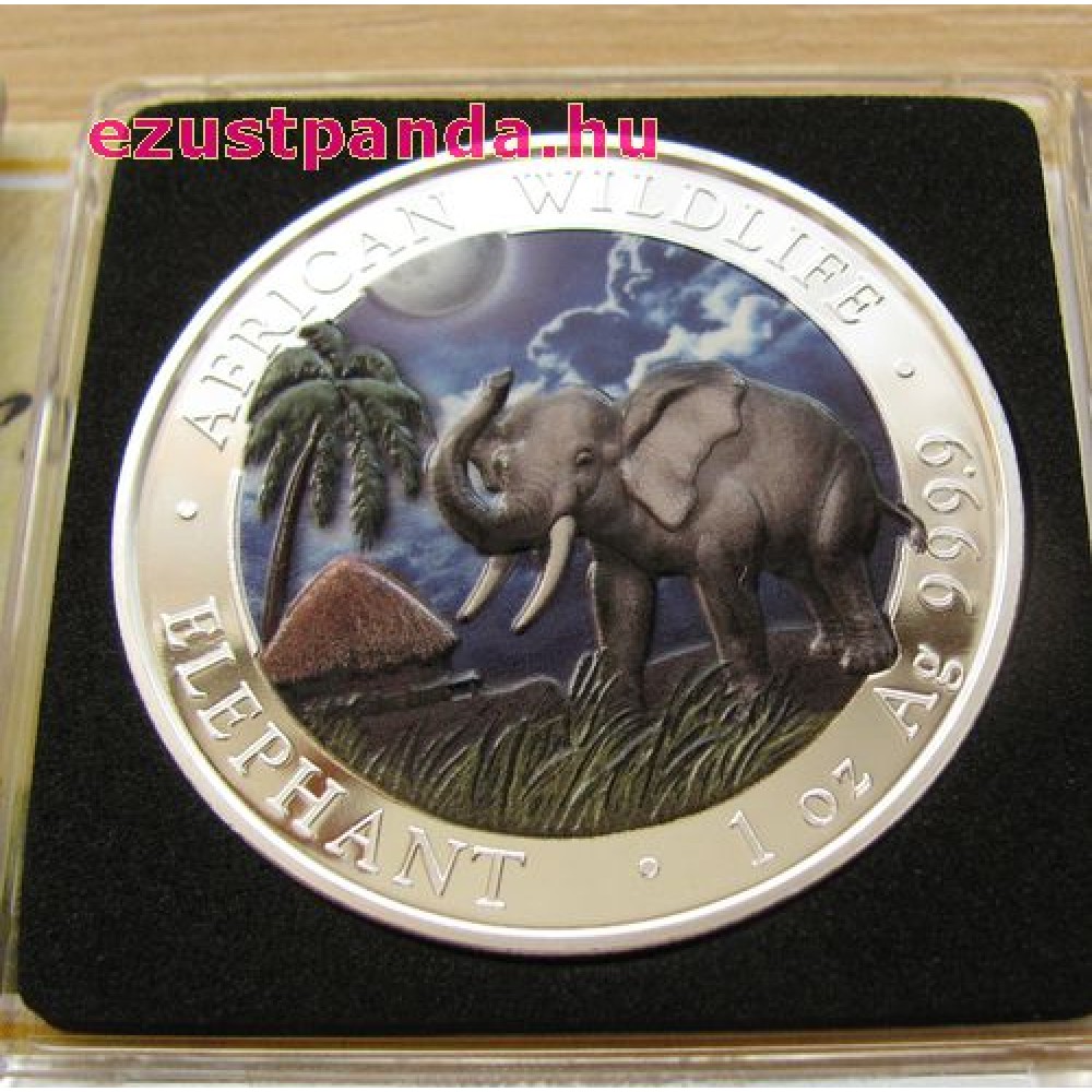 Szomália Elefánt 2014 1 uncia színes ezüst pénzérme S-SO-Elep1oz14COLOR