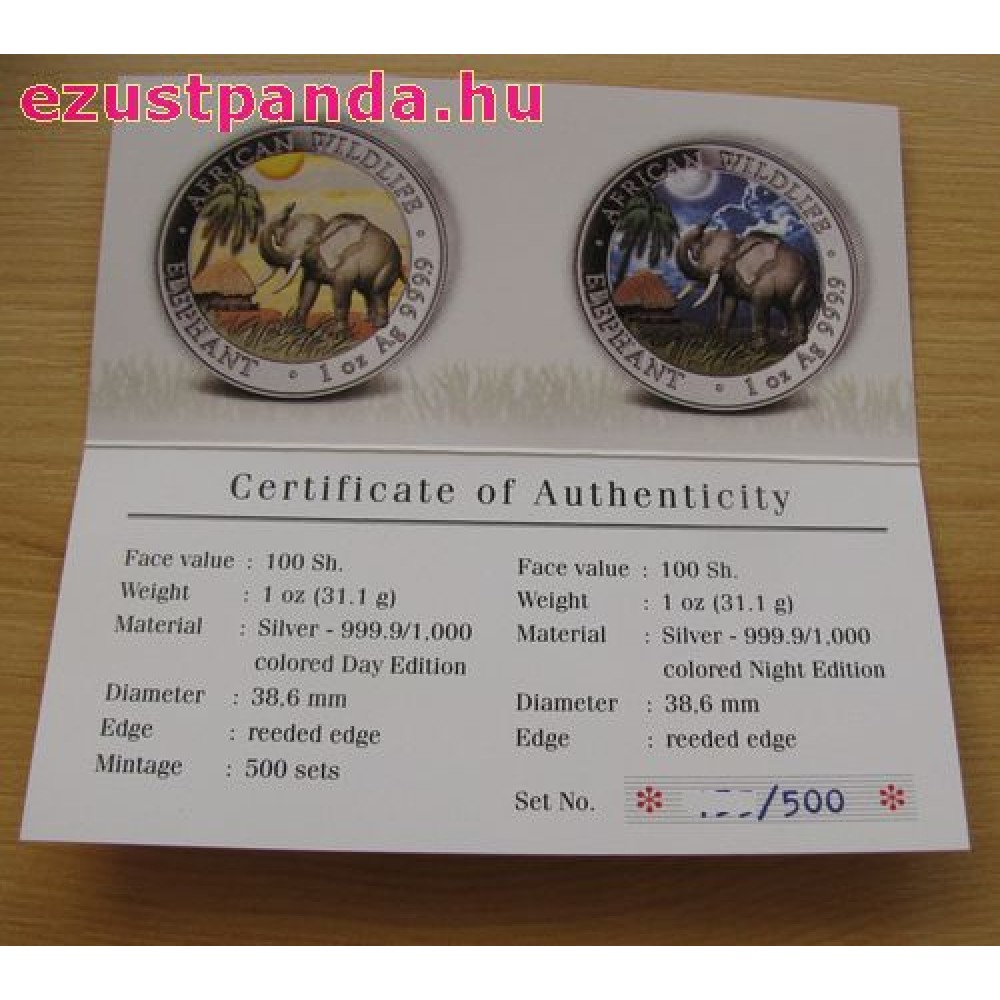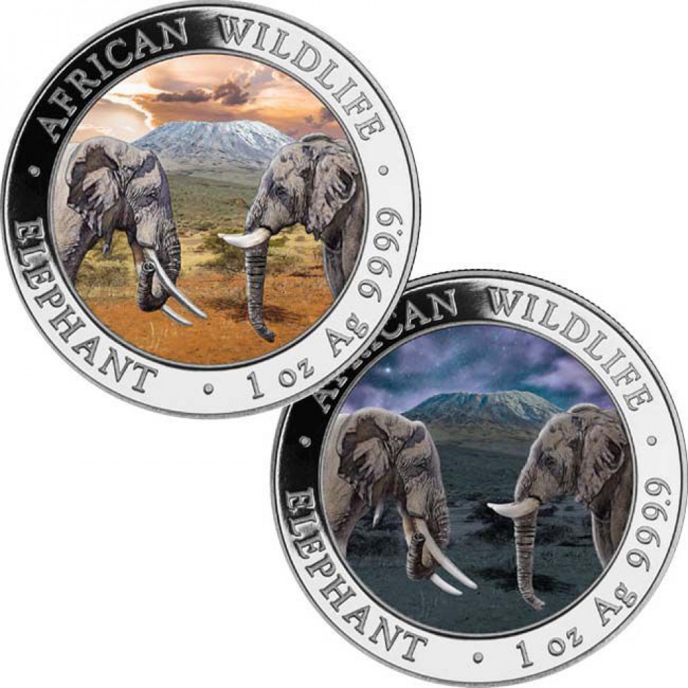 Szomália Elefánt 2017 "Nappal és Éjszaka" 2x1 uncia színes ezüst érmeszett S-SO-Elep2x1oz17Set