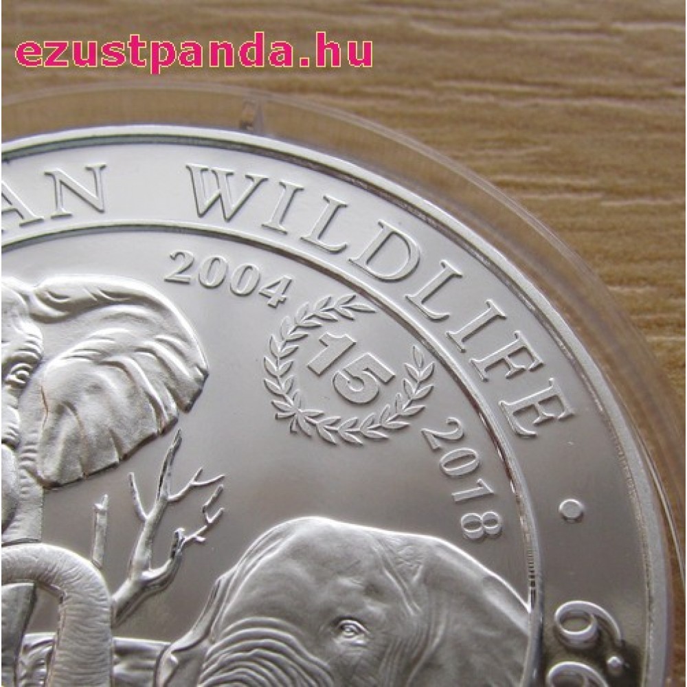 Szomália Elefánt 2018 1 uncia ezüst pénzérme "15 éves jubileum" S-SO-Elep1oz18ANN