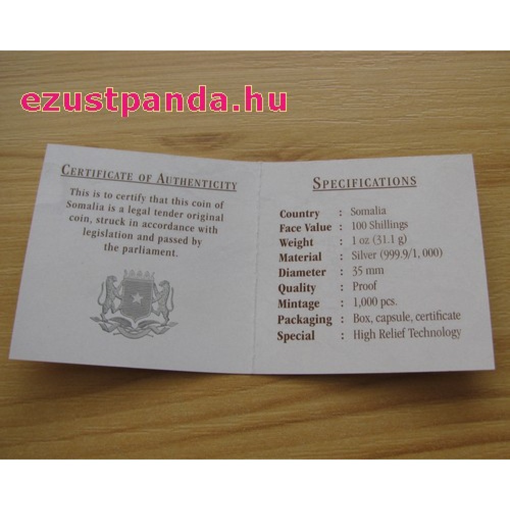 Szomália Elefánt 2026 1 uncia high-relief proof ezüst pénzérme S-SO-Elep1oz26HR