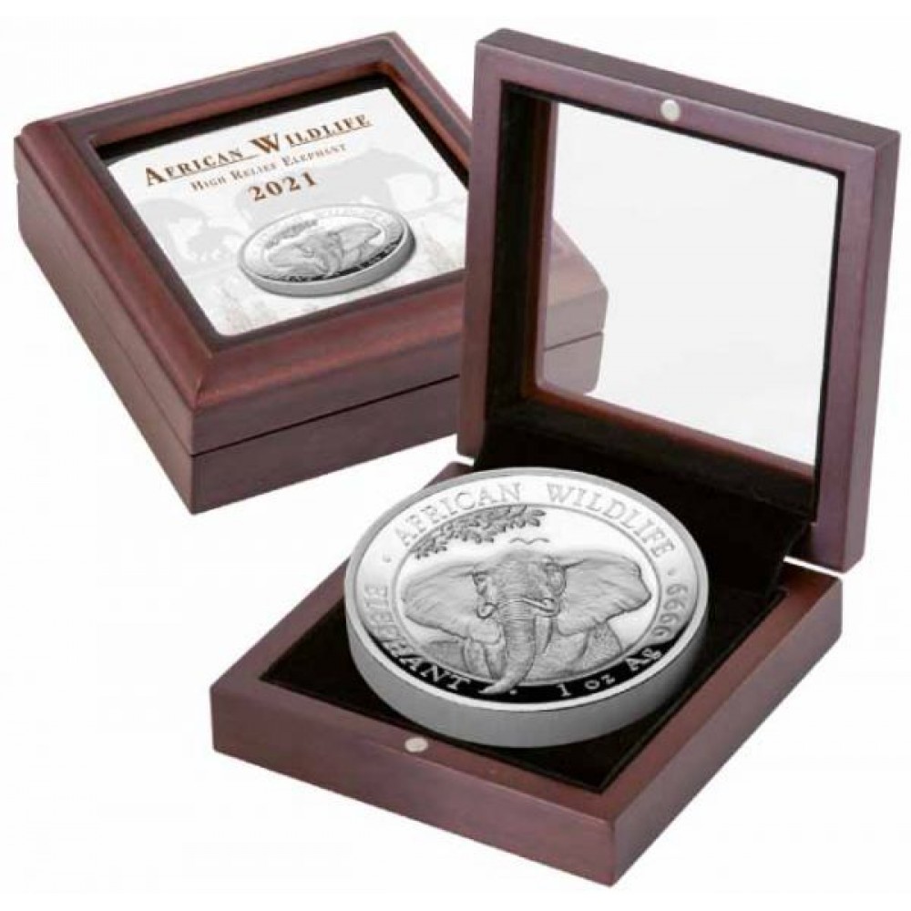 Szomália Elefánt 2021 1 uncia high-relief proof ezüst pénzérme S-SO-Elep1oz21HR