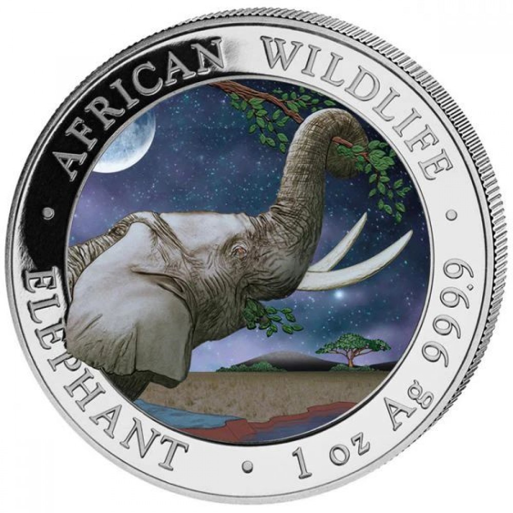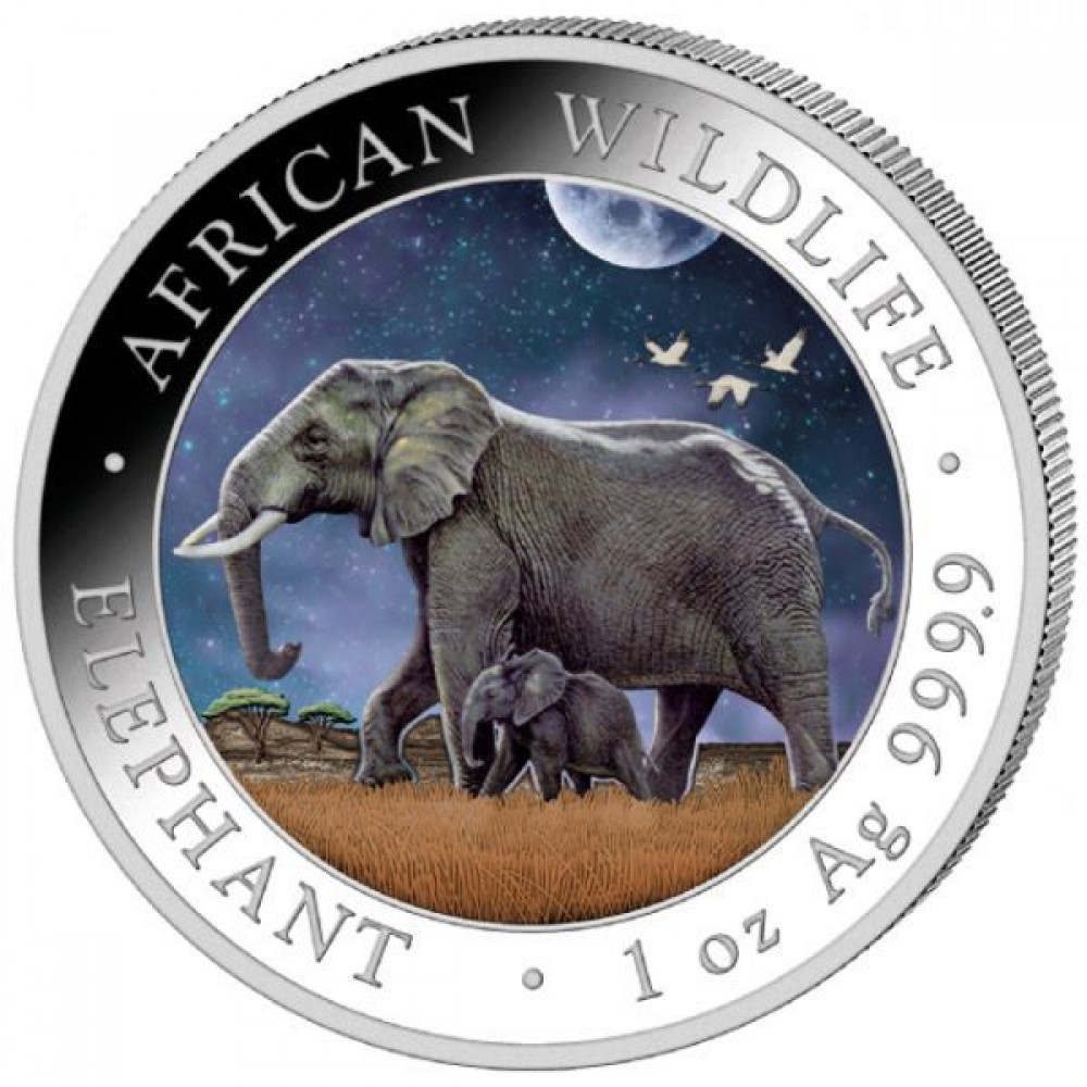 Szomália Elefánt 2017 1 uncia színes ezüst pénzérme S-SO-Elep1oz17COLOR