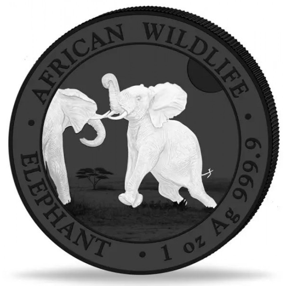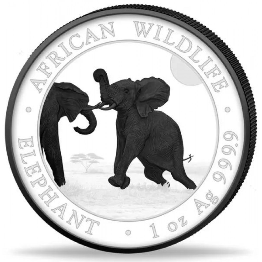 Szomália Elefánt 2025 "Fekete és Fehér" 2x1 uncia ruténiummal bevont ezüst érmeszett S-SO-Elep2x1oz25SetBW