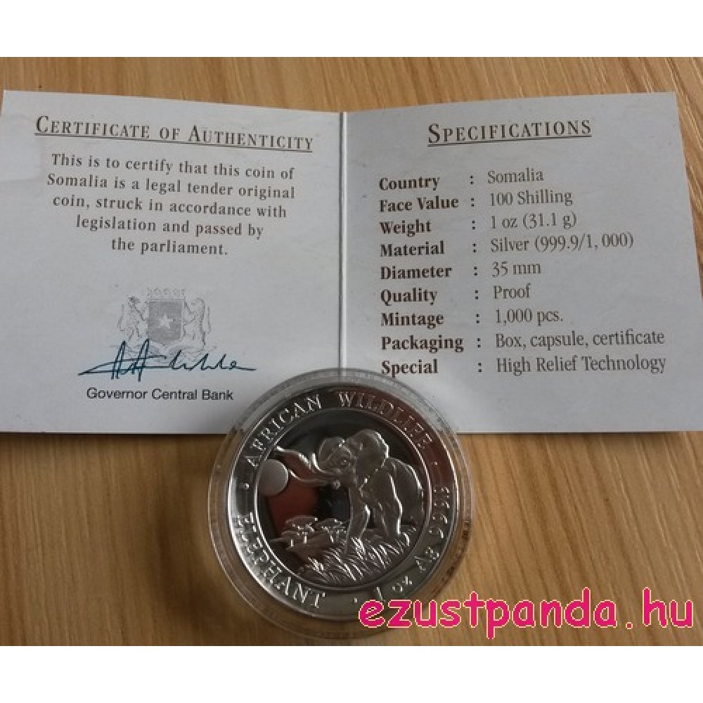 Szomália Elefánt 2012 1 uncia ezüst pénzérme S-SO-Elep1oz12