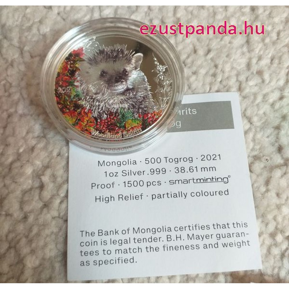 Sündisznó Mongólia 2021 színes proof ezüst pénzérme - CSAK 1500 PÉLDÁNY! S-MN-Hedgehog21