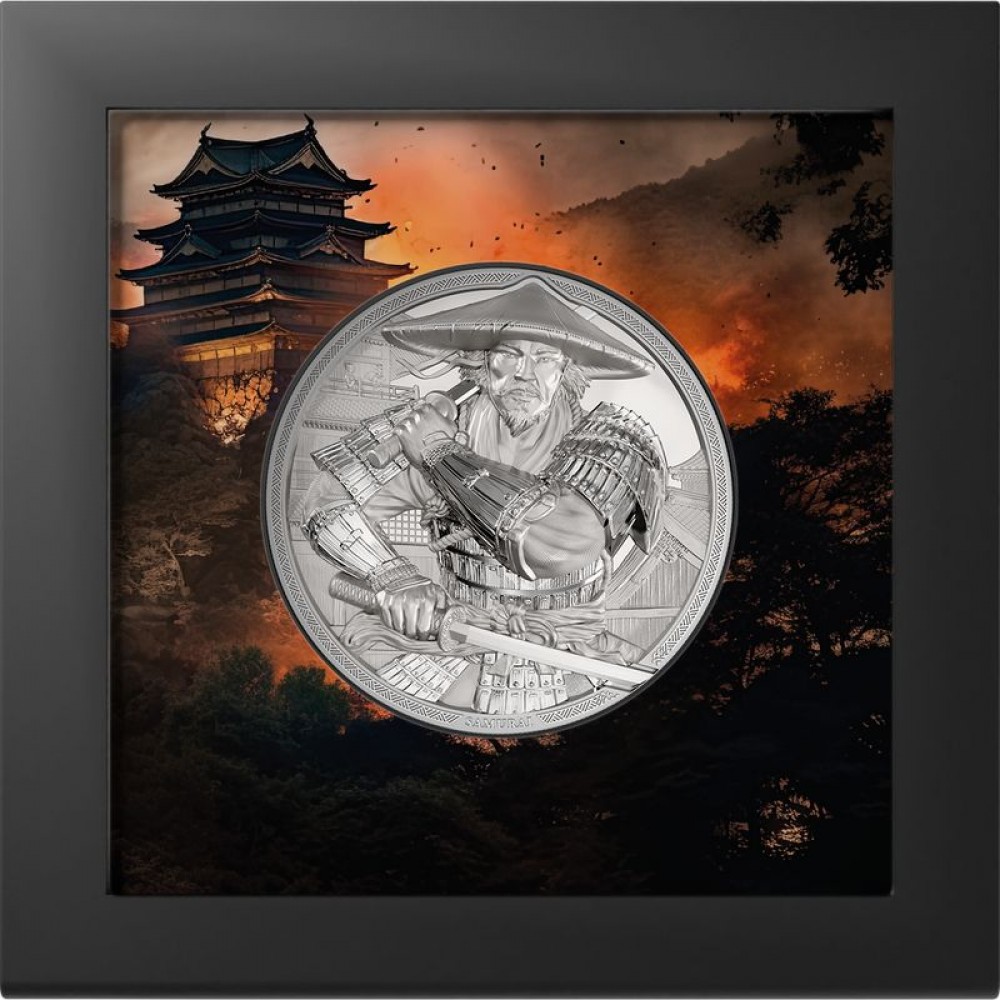 Szamuráj 2025 - Cook-szk. 5 uncia proof ezüst pénzérme - CSAK 555 PÉLDÁNYBAN! S-CK-Samurai25PP