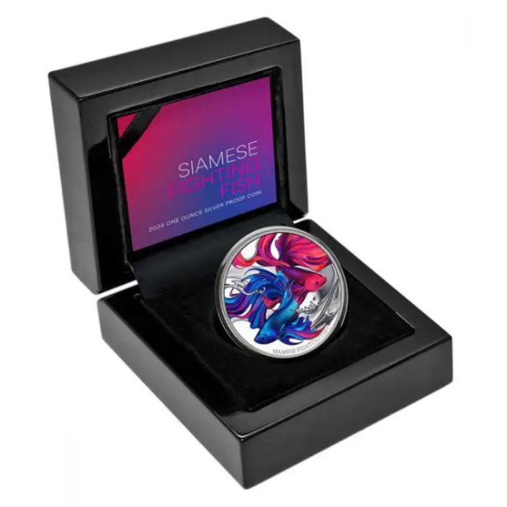Sziámi harcoshalak 2024 Niue 1 uncia proof ezüst pénzérme - CSAK 1000 PÉLDÁNYBAN! S-NU-Siamese24PP