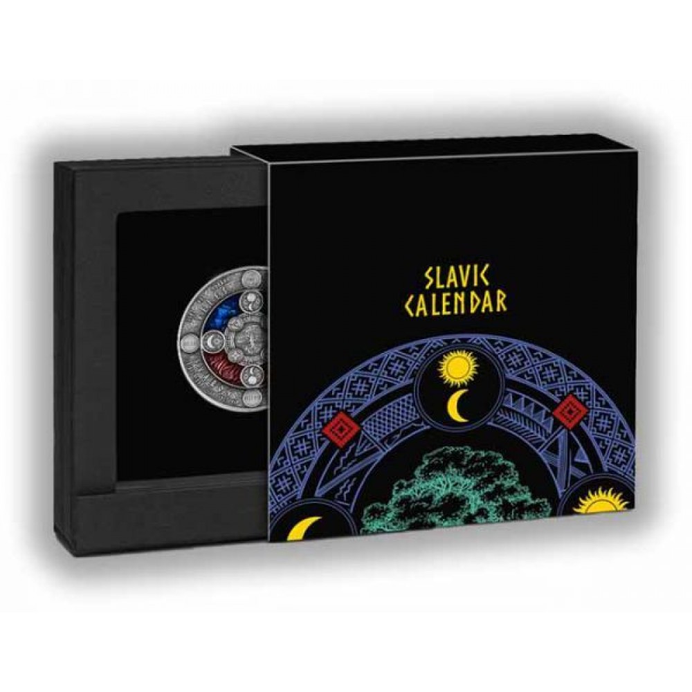 Szláv naptár 2020 2 uncia antikolt ezüst pénzérme S-NU-CalSlavic20