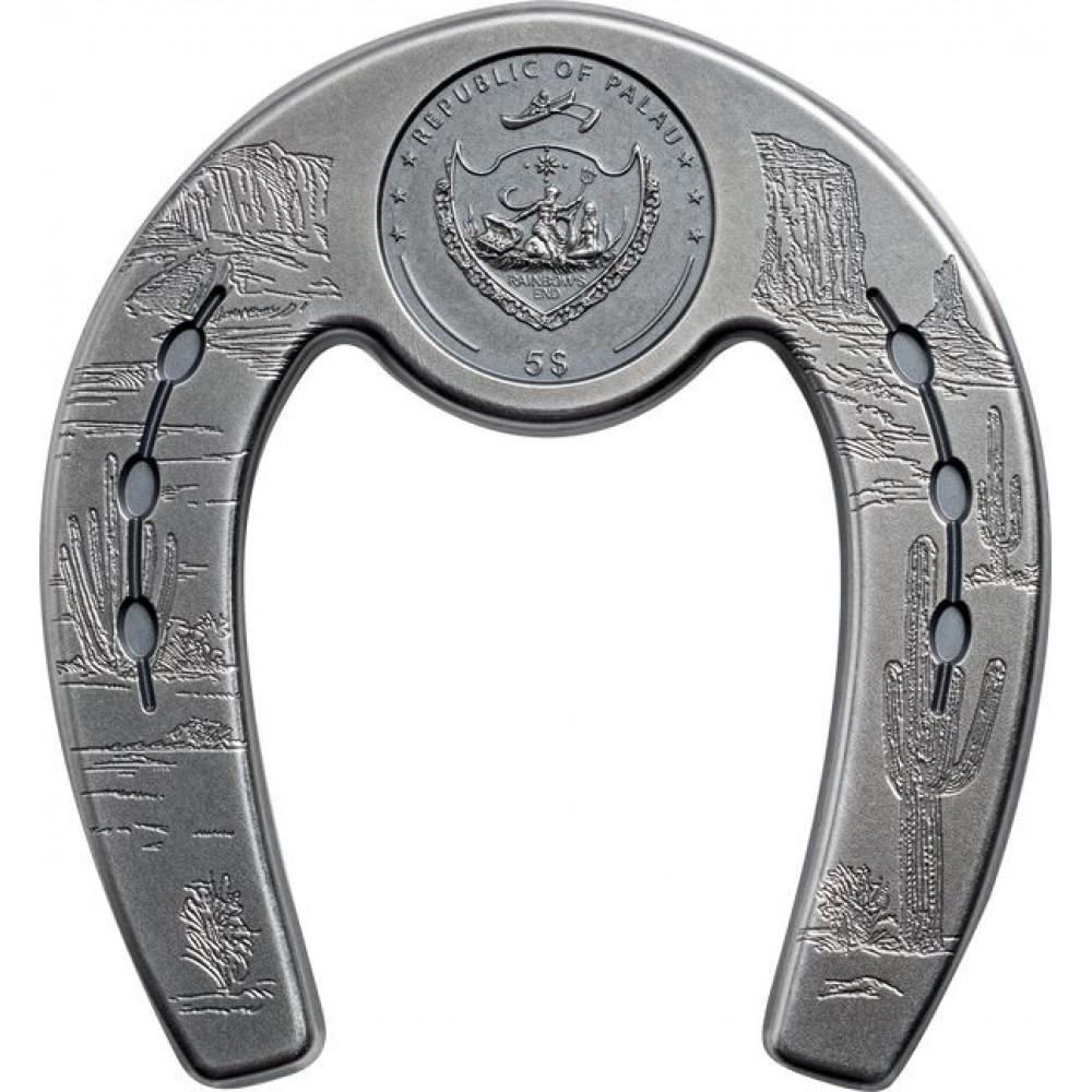 Szerencse lópatkó Palau 2021 1 uncia antikolt ezüst pénzérme S-PA-Horseshoe21