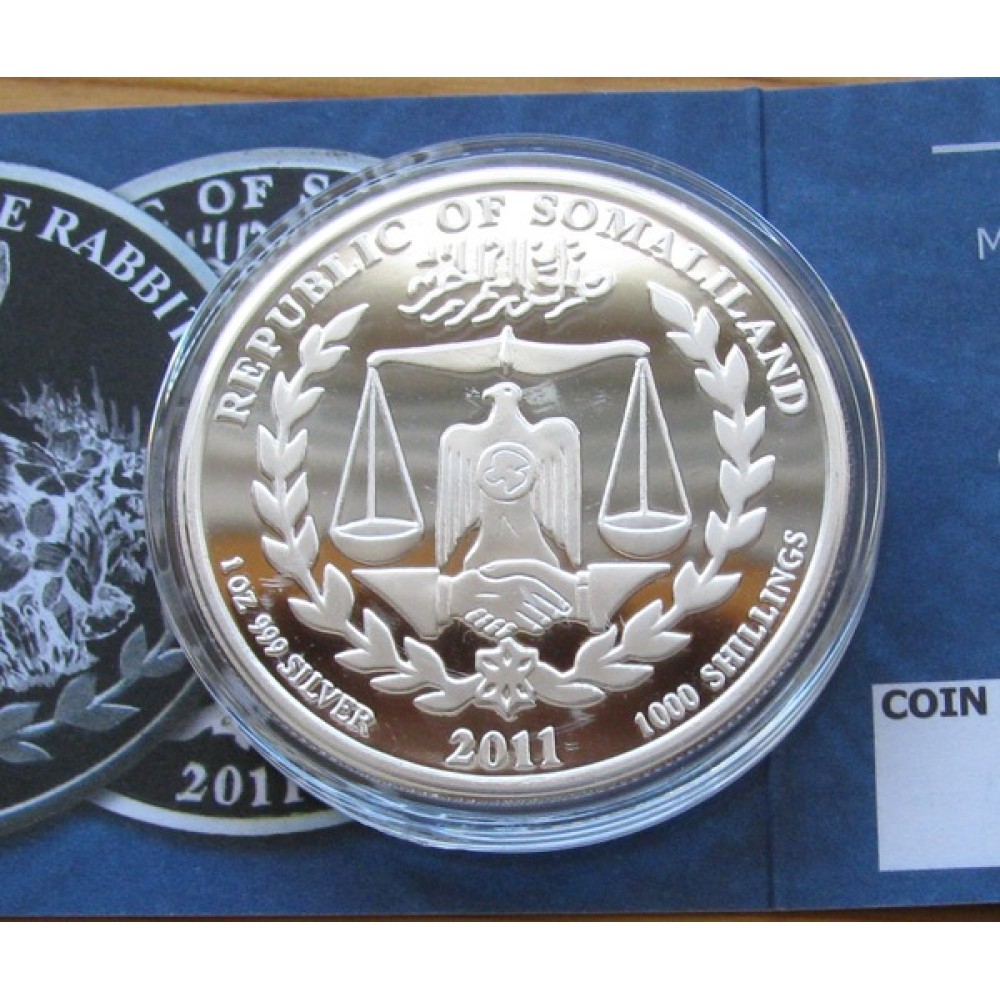 Szomáliföld Nyúl éve 2011 1 uncia proof ezüst pénzérme S-SL-Rabbit1oz11PP