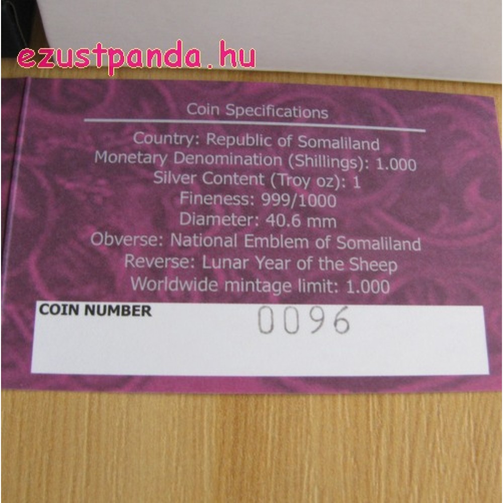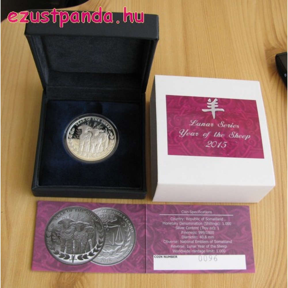Szomáliföld Bárány éve 2015 1 uncia proof ezüst pénzérme S-SL-Sheep1oz11PP