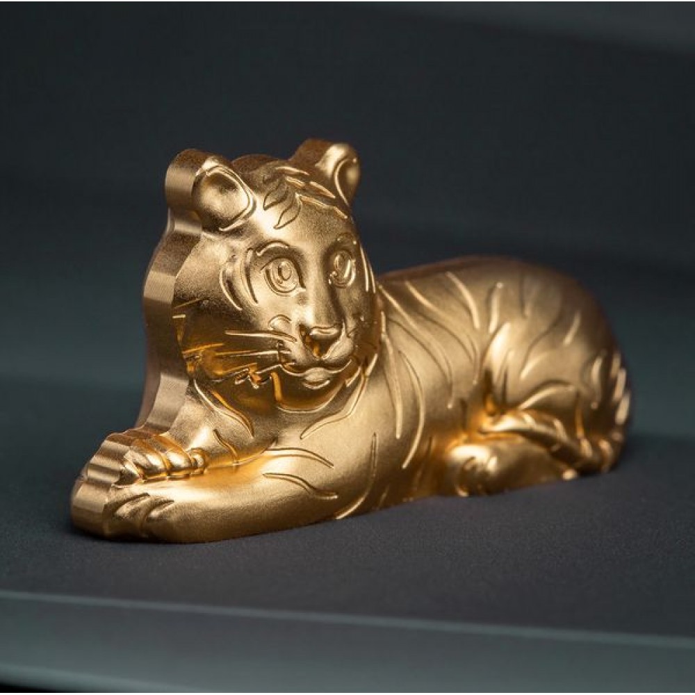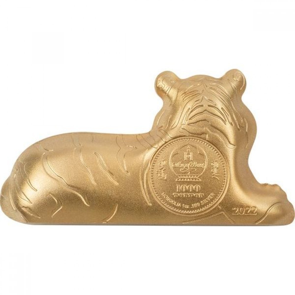 Tigris éve - Tuvalu 2022 1 uncia antikolt ezüst pénzérme, forgó, aranyozott tigrissel S-TV-RotTig22