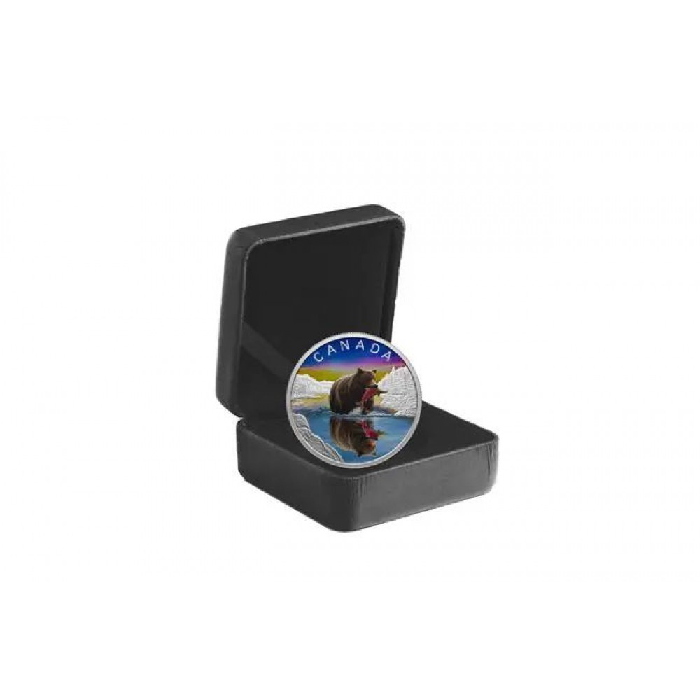 Tükröződés - Grizzlymedve 2024 1 uncia kanadai proof ezüst pénzérme S-CA-ReflGrizzly24
