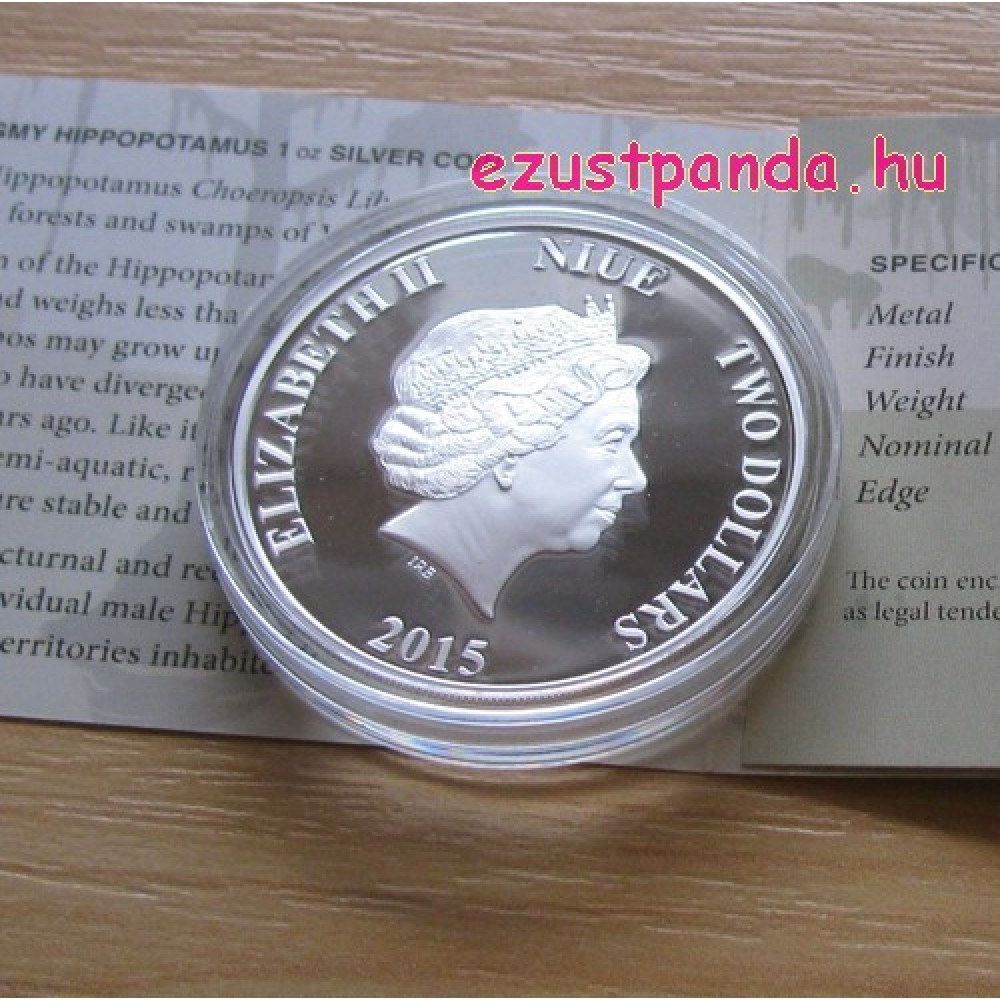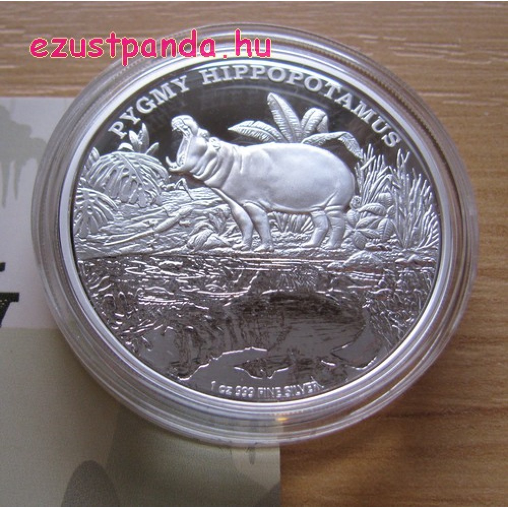 Törpe víziló 2015 1 uncia proof ezüst pénzérme S-NU-PigmyHyppo15