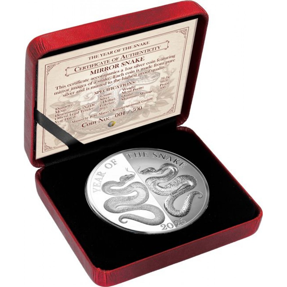 Tokelau Kígyó éve "Mirror Snakes" 2025 1 uncia proof ezüst pénzérme - CSAK 500 PÉLDÁNY! S-TK-MirrorSnake25