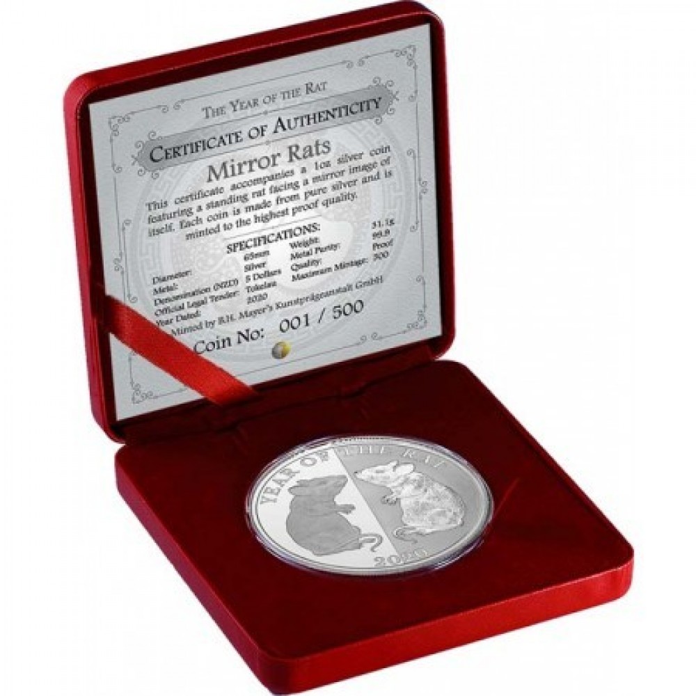 Tokelau Patkány (Egér) éve "Mirror Rats" 2020 1 uncia proof ezüst pénzérme - CSAK 500 PÉLDÁNY! S-TK-MirrorRats20