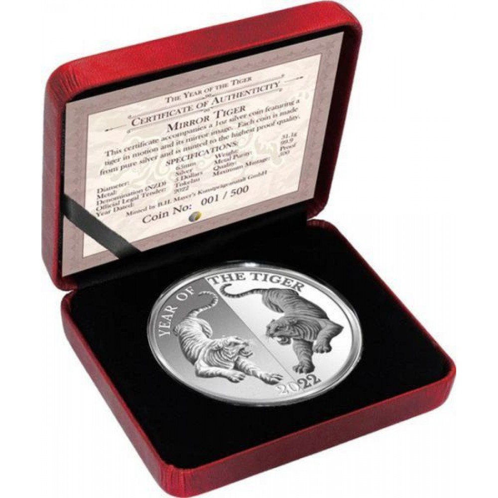 Tokelau Tigris éve "Mirror Tigers" 2022 1 uncia proof ezüst pénzérme - CSAK 500 PÉLDÁNY! S-TK-MirrorTig22