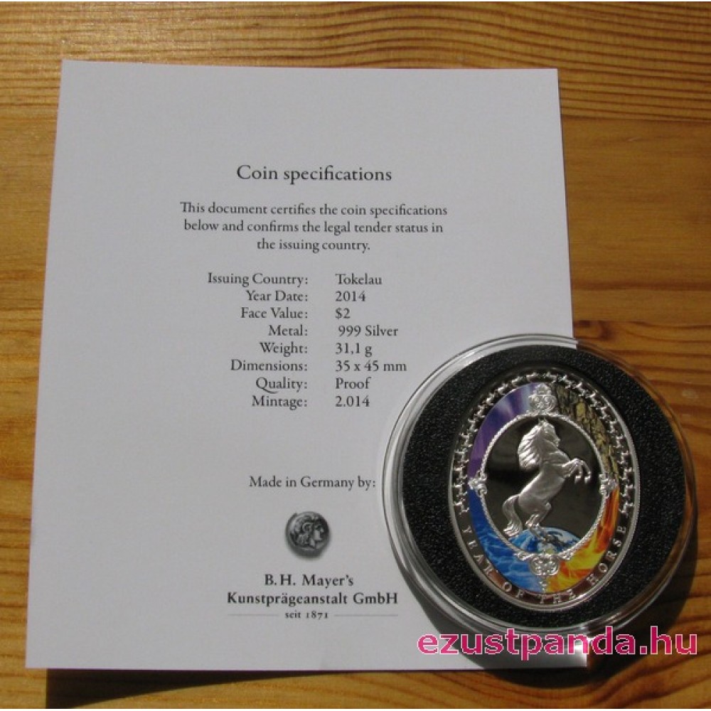 Tokelau Ló éve 2014 proof ezüst pénzérme S-TK-Horse2014PP