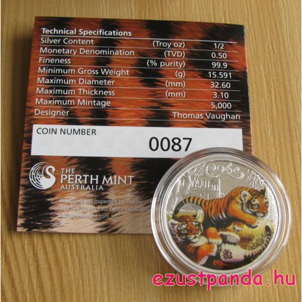 Tigriskölykök 2016 1/2 uncia színes ezüst pénzérme S-TV-CubsTiger16
