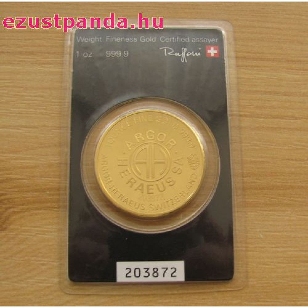 Aranyrúd 1 uncia svájci Argor-Heraeus G-CH-Bar1ozAH