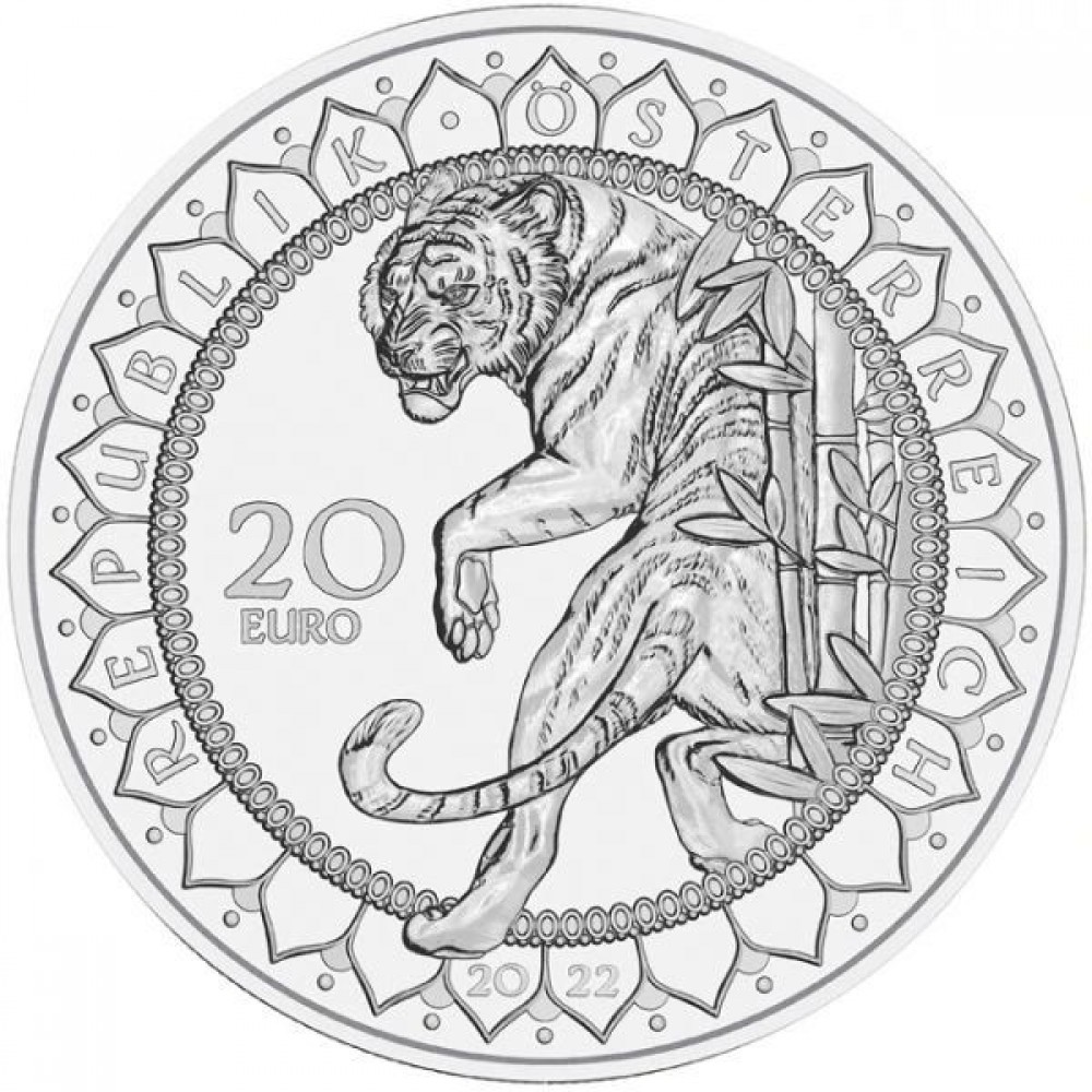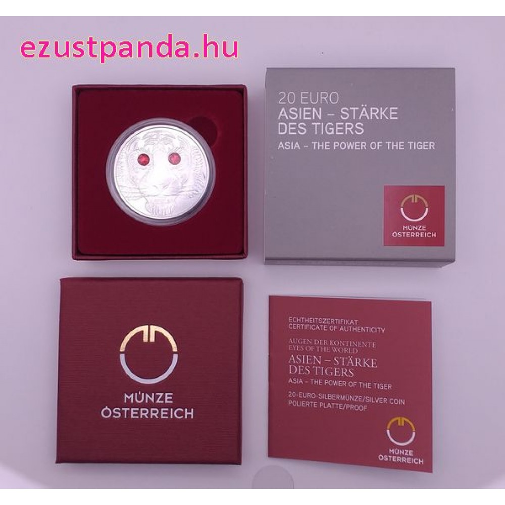 A világ szemei - A tigris ereje 20 EUR 2022 proof ezüst pénzérme Swarovski kristályokkal S-AT-AKTiger22PP