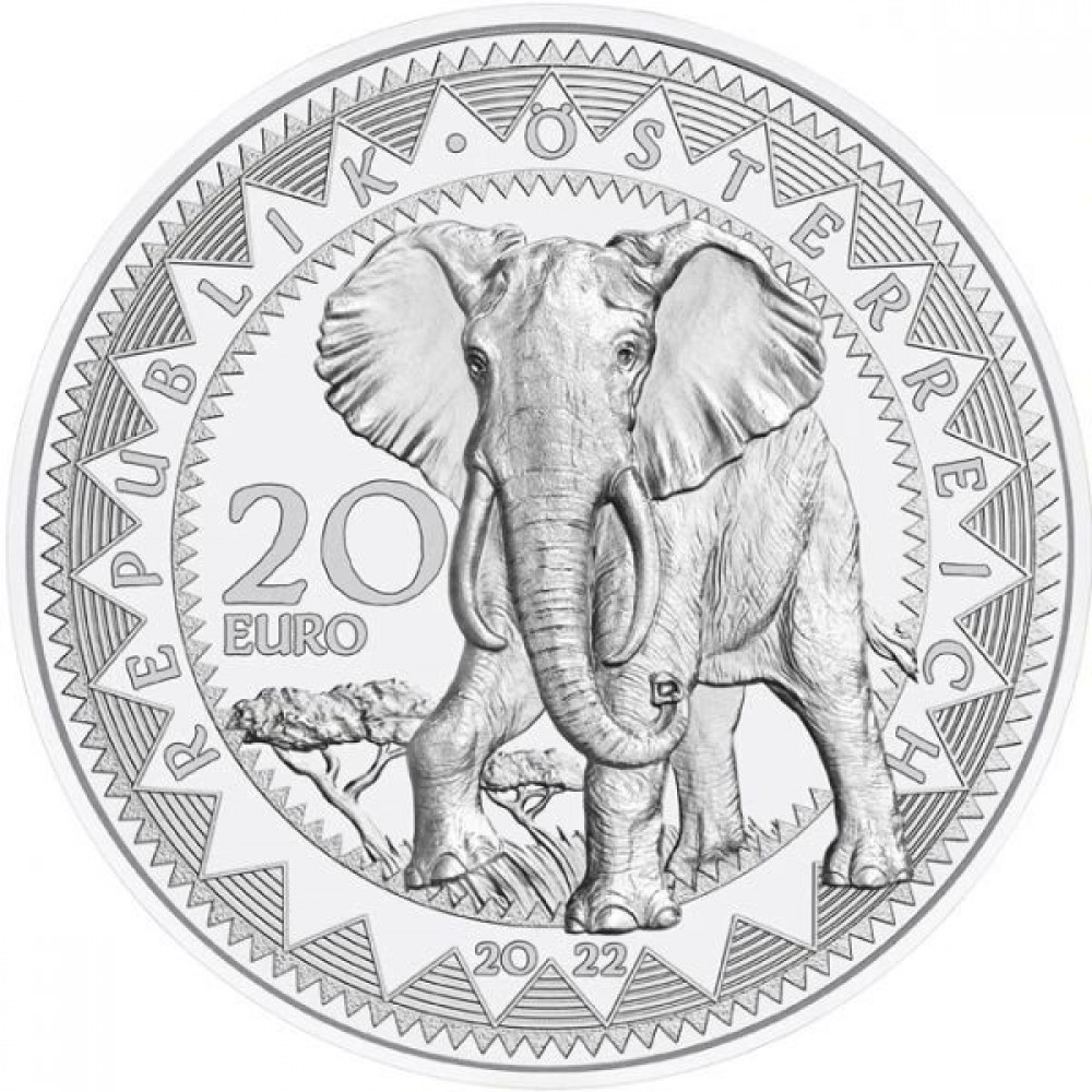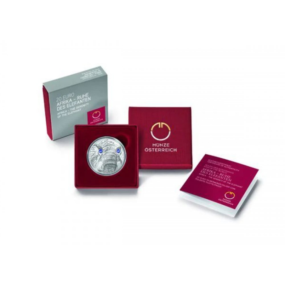 A világ szemei - Az elefánt nyugalma 20 EUR 2022 proof ezüst pénzérme Swarovski kristályokkal S-AT-AKElef22PP