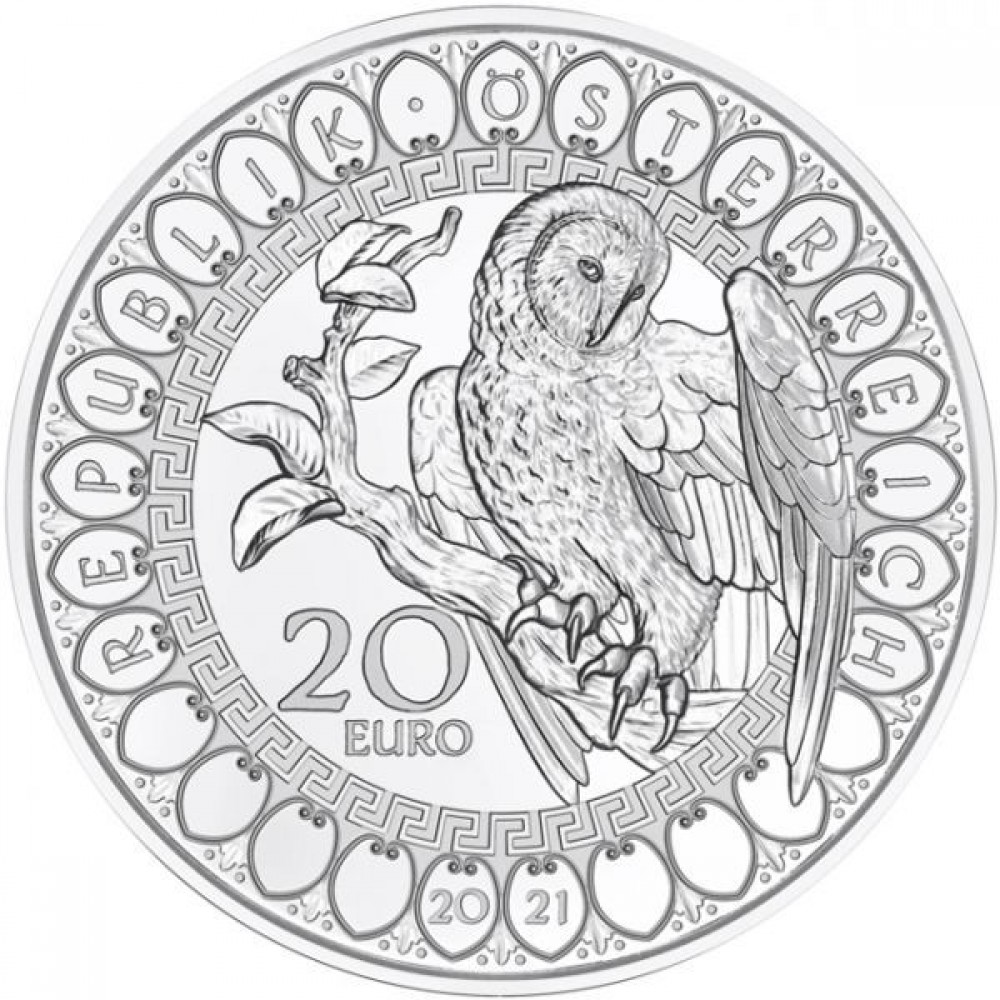 A világ szemei - A bölcs bagoly 20 EUR 2021 proof ezüst pénzérme Swarovski kristállyal S-AT-AKEule21PP