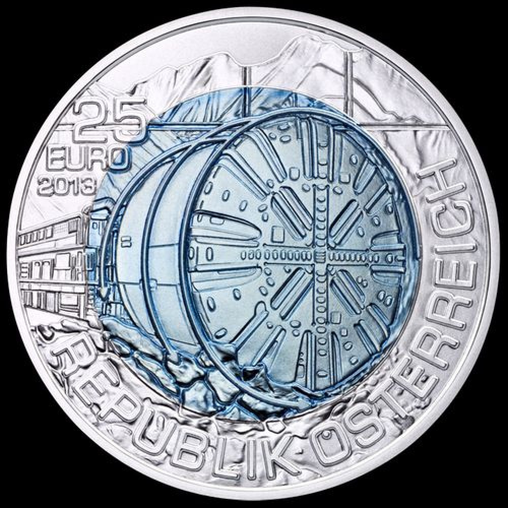 Alagútfúrás (Tunnelbau) 25 EUR 2013 ezüst-nióbium pénzérme S-AT-NiobTunn13