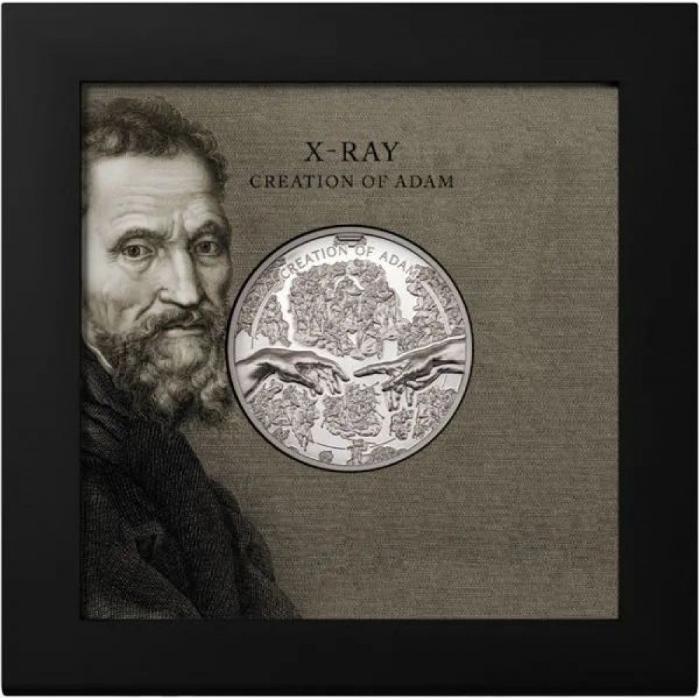Ádám teremtése 2023 Cook-szk 1 uncia proof ezüst pénzérme - RÖNTGENKÉPPEL! S-CK-Adam23
