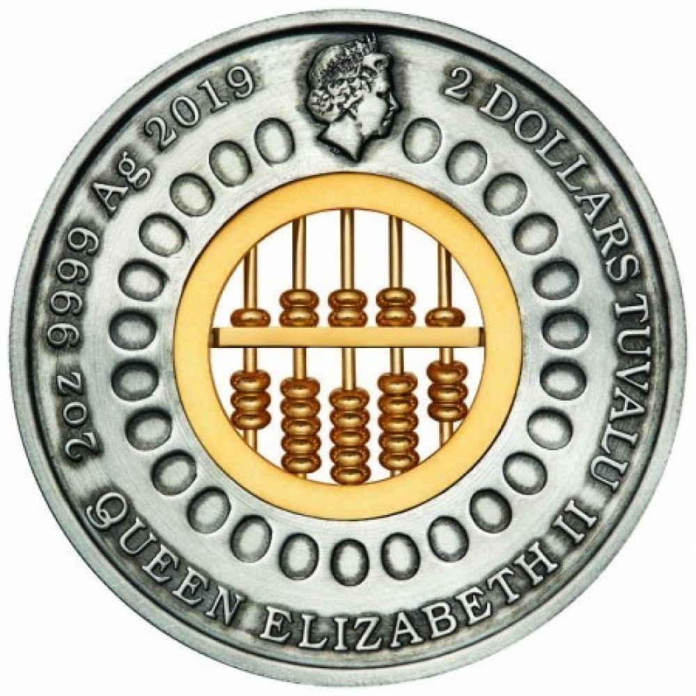 Abakusz - Tuvalu 2019 2 uncia antikolt ezüst pénzérme S-TV-Abacus19