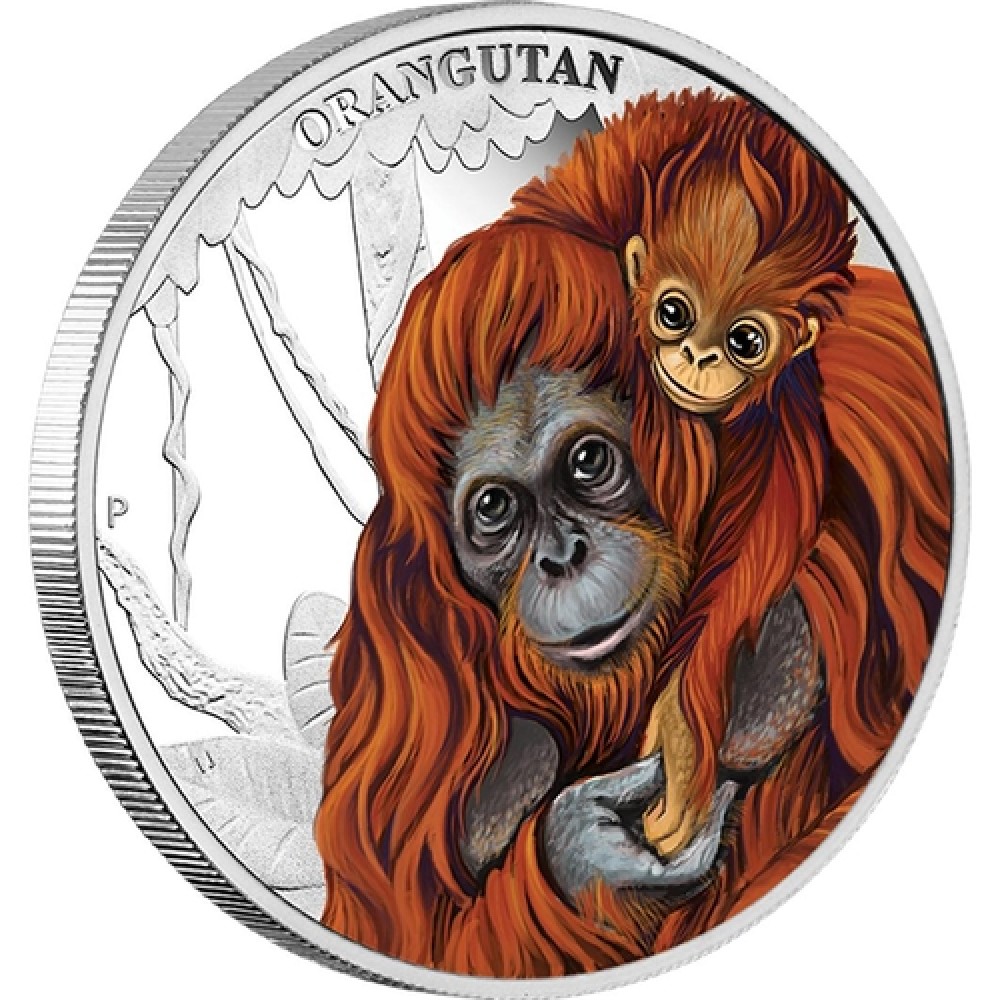 Anyai szeretet - Orangután 2014 1/2 uncia színes ezüst pénzérme S-TV-MotherOrang14