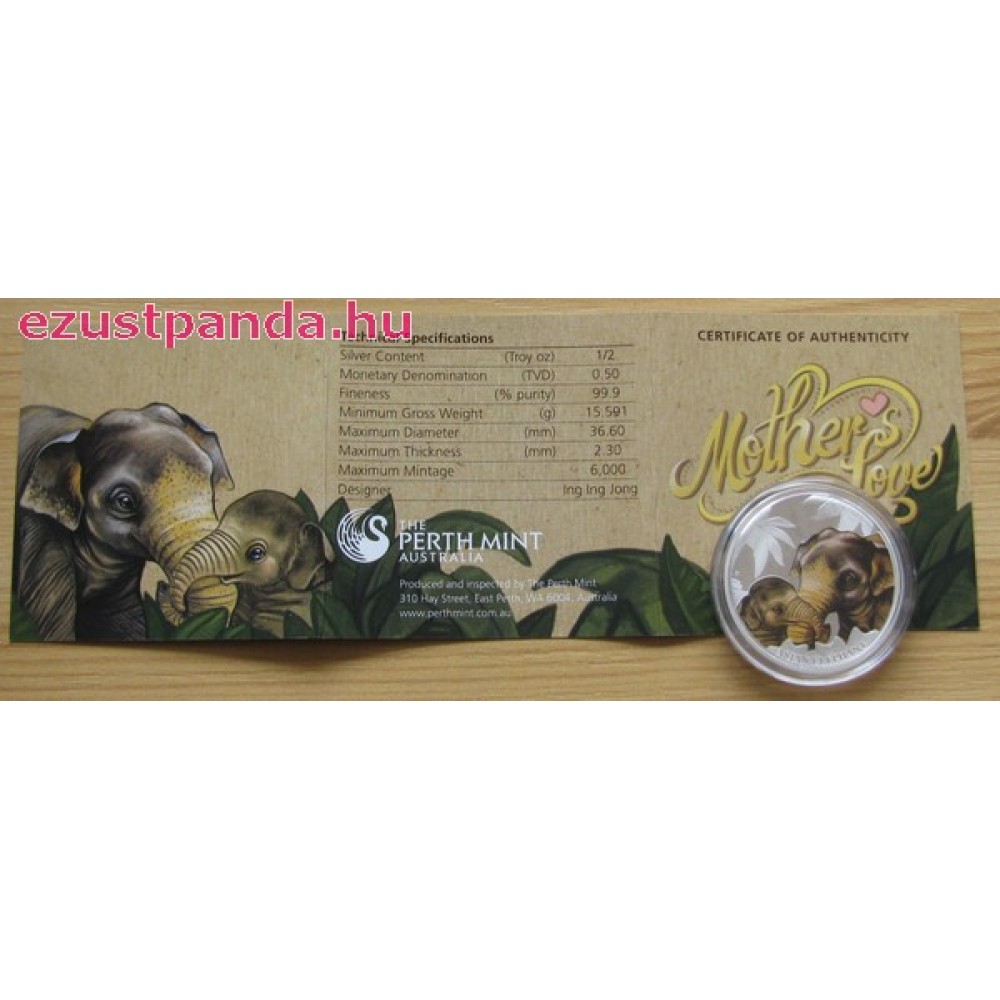 Anyai szeretet - Elefánt 2014 1/2 uncia színes ezüst pénzérme S-TV-MotherEleph14