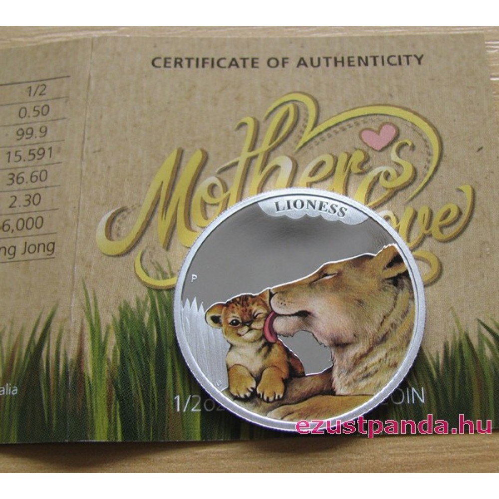 Anyai szeretet - Oroszlán 2014 1/2 uncia színes ezüst pénzérme S-TV-MotherLioness14